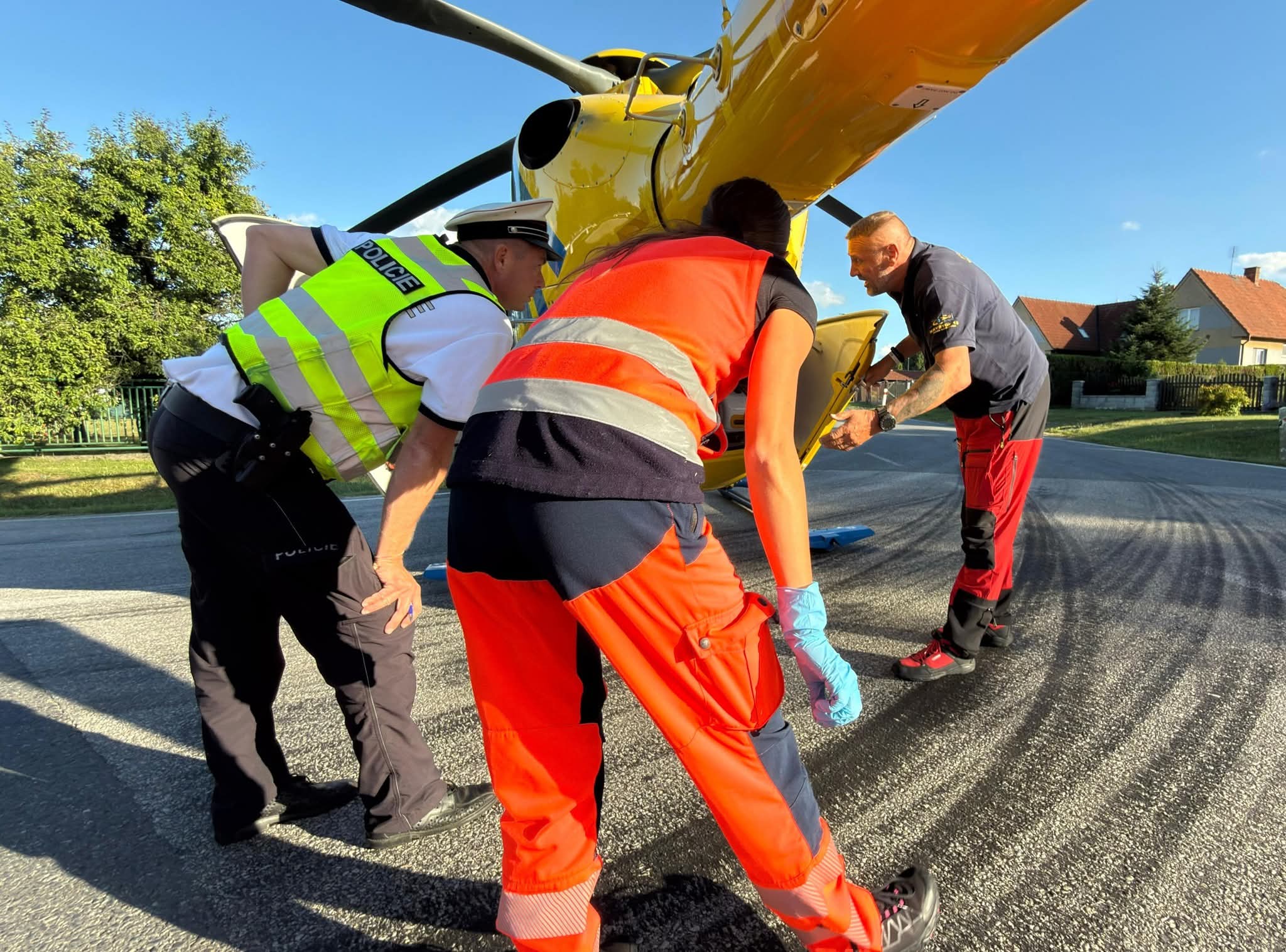 🚁 Následně byl pacient letecky transportován do traumacentra v Českých Budějovicích 🏨