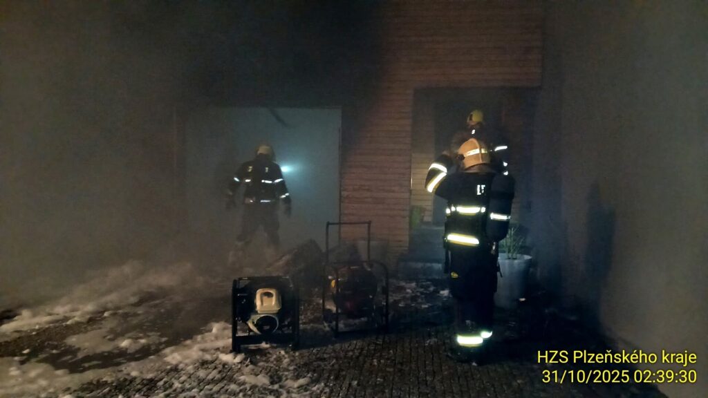 Čtyři jednotky hasičů byly vyslány k požáru rodinného domu a garáže.