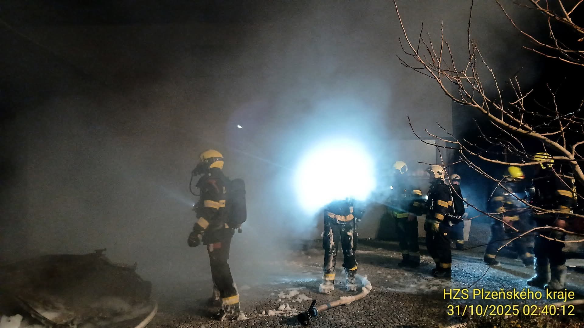 Čtyři jednotky hasičů byly vyslány k požáru rodinného domu a garáže.