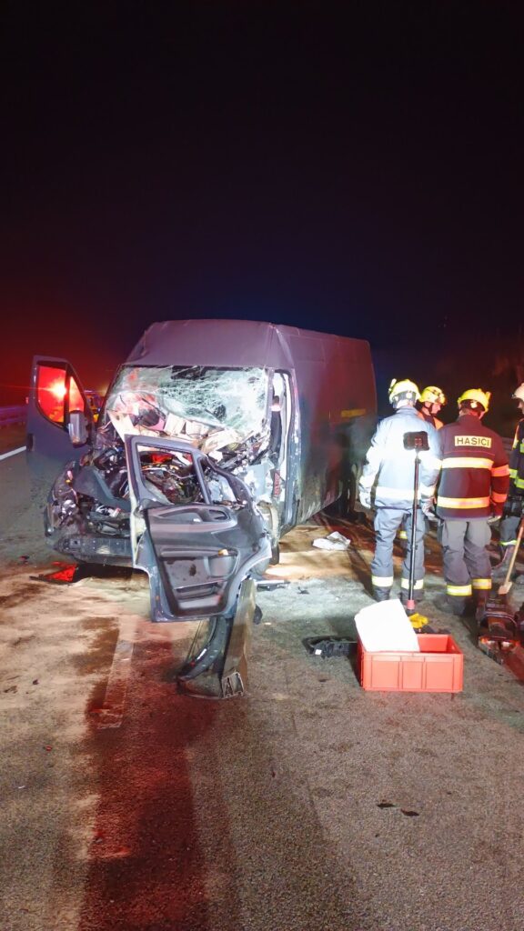 Dopravní nehoda dodávky a kamionu uzavřela D3 v úseku Ševětín->Veselí. Zraněnou, zaklíněnou osobu jsme po vyproštění předali posádce @zzsjck, provedli jsme protipožární opatření na poškozeném vozidle a zásyp uniklých kapalin sorbentem. Na místě probíhá vyšetřování @PolicieCZ, uvedl mluvčí hasičů Roman Krčmář.