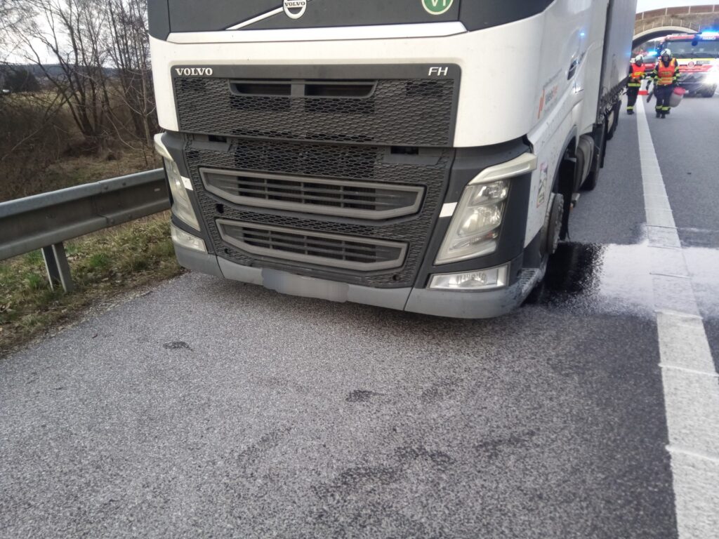 Dopravní komplikaci na D3 ve směru z Prahy na Kaplici očekávejte na 122,5km. Stojí zde odstavený kamion a zasahujeme u masivního úniku provozních kapalin do jízdního pruhu.