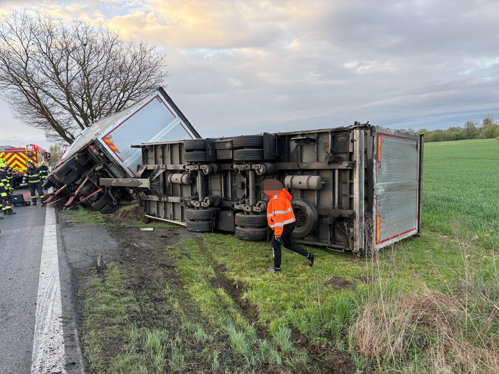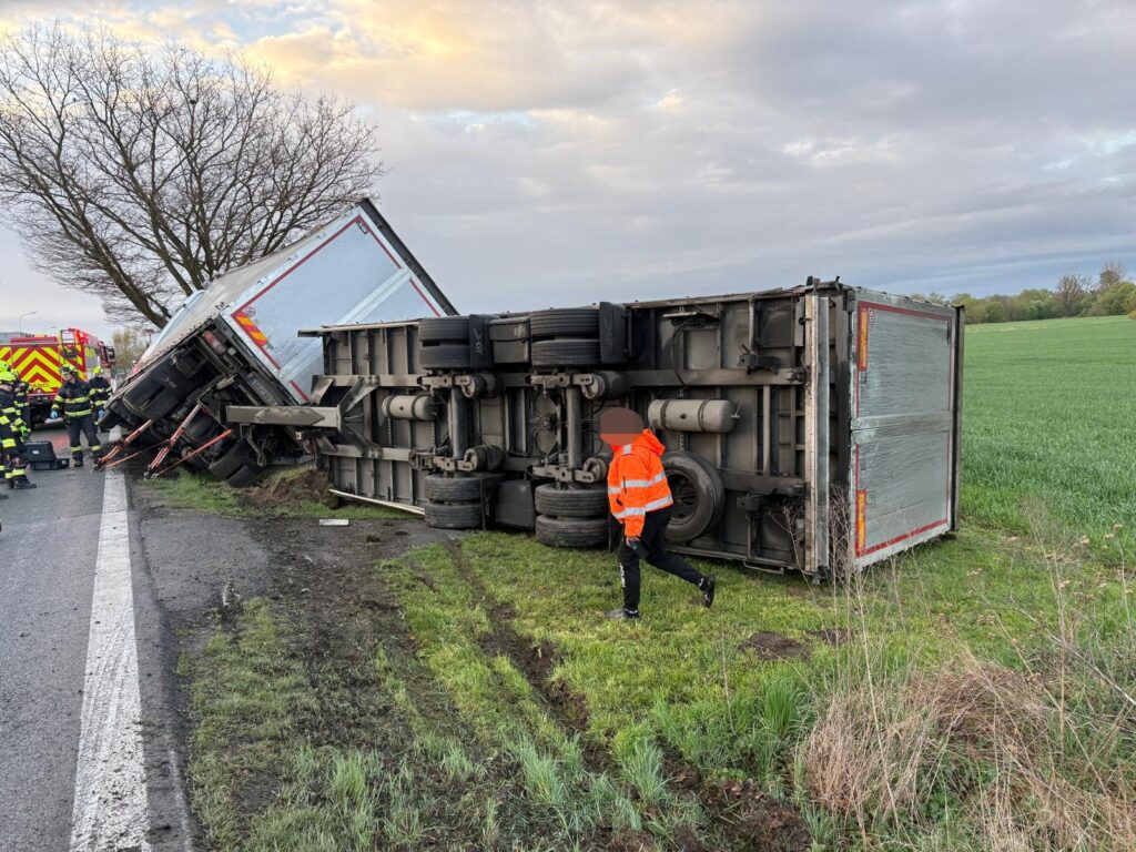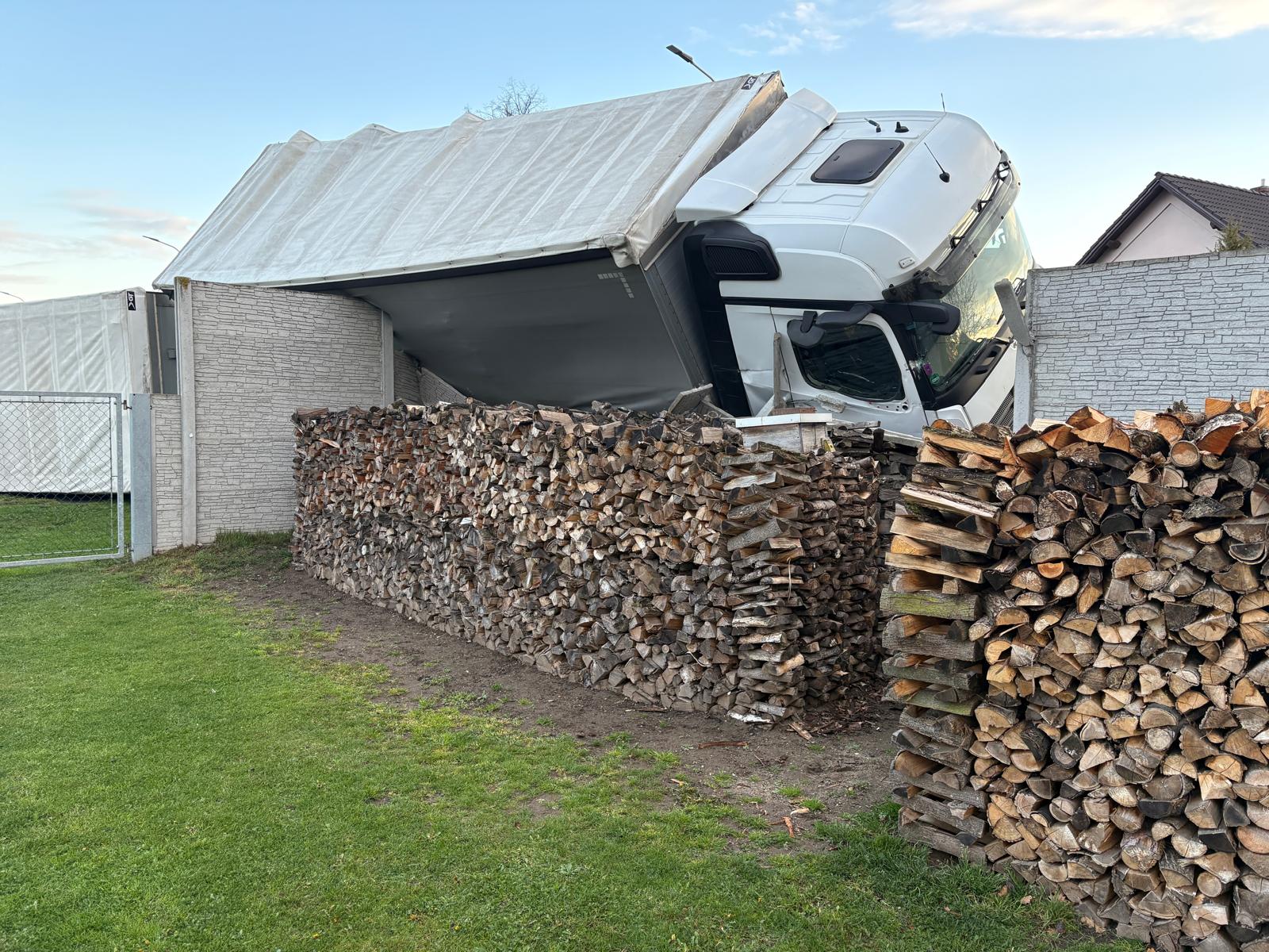 Dnes ráno jsme zasahovali u nehody kamionu, který narazil do oplocení v obci Blešno. Řidič se po nehodě nemohl z vozidla dostat, ale ještě před příjezdem jednotky se mu podařilo kabinu opustit. Naštěstí vyvázl bez zranění.