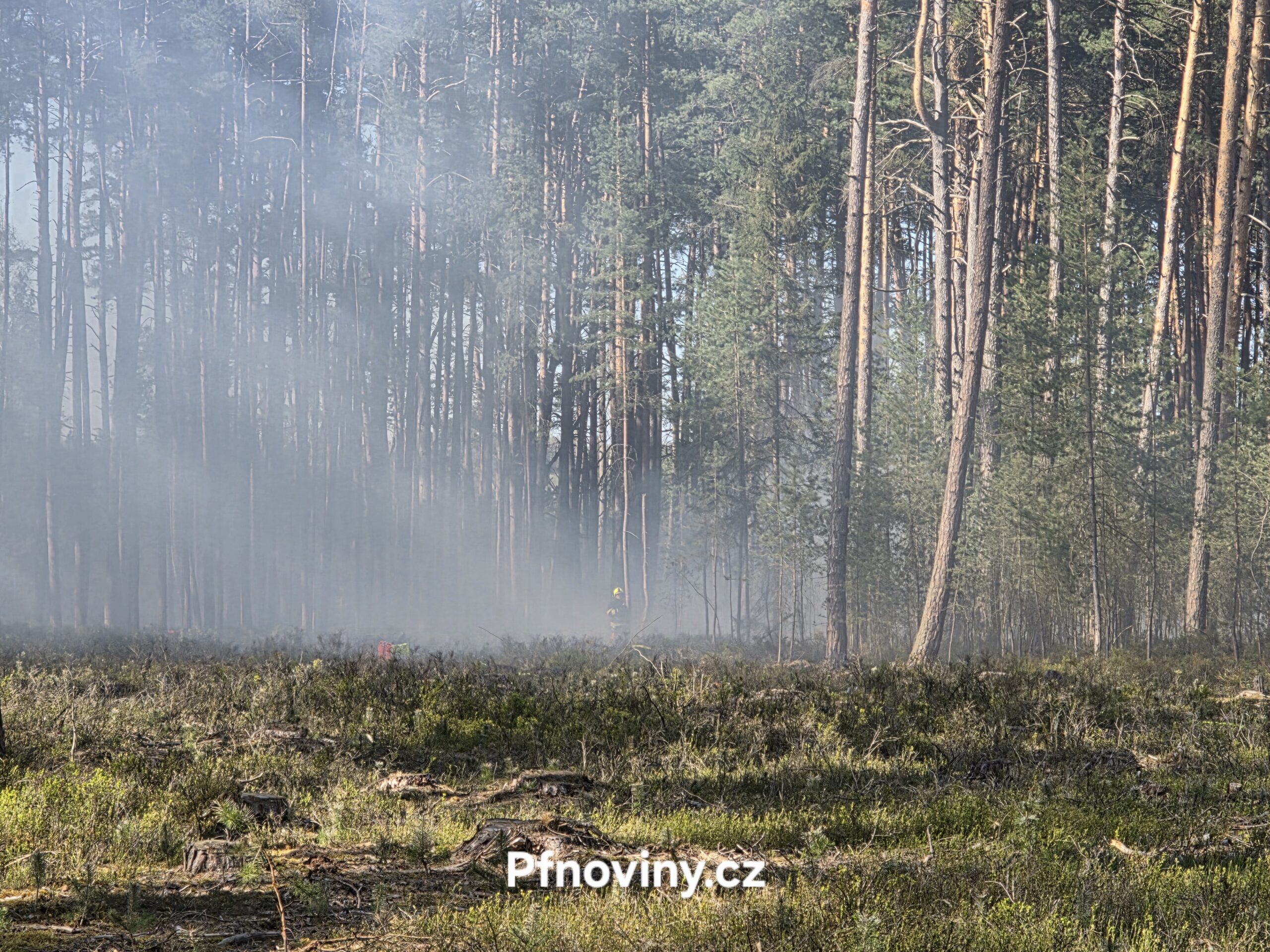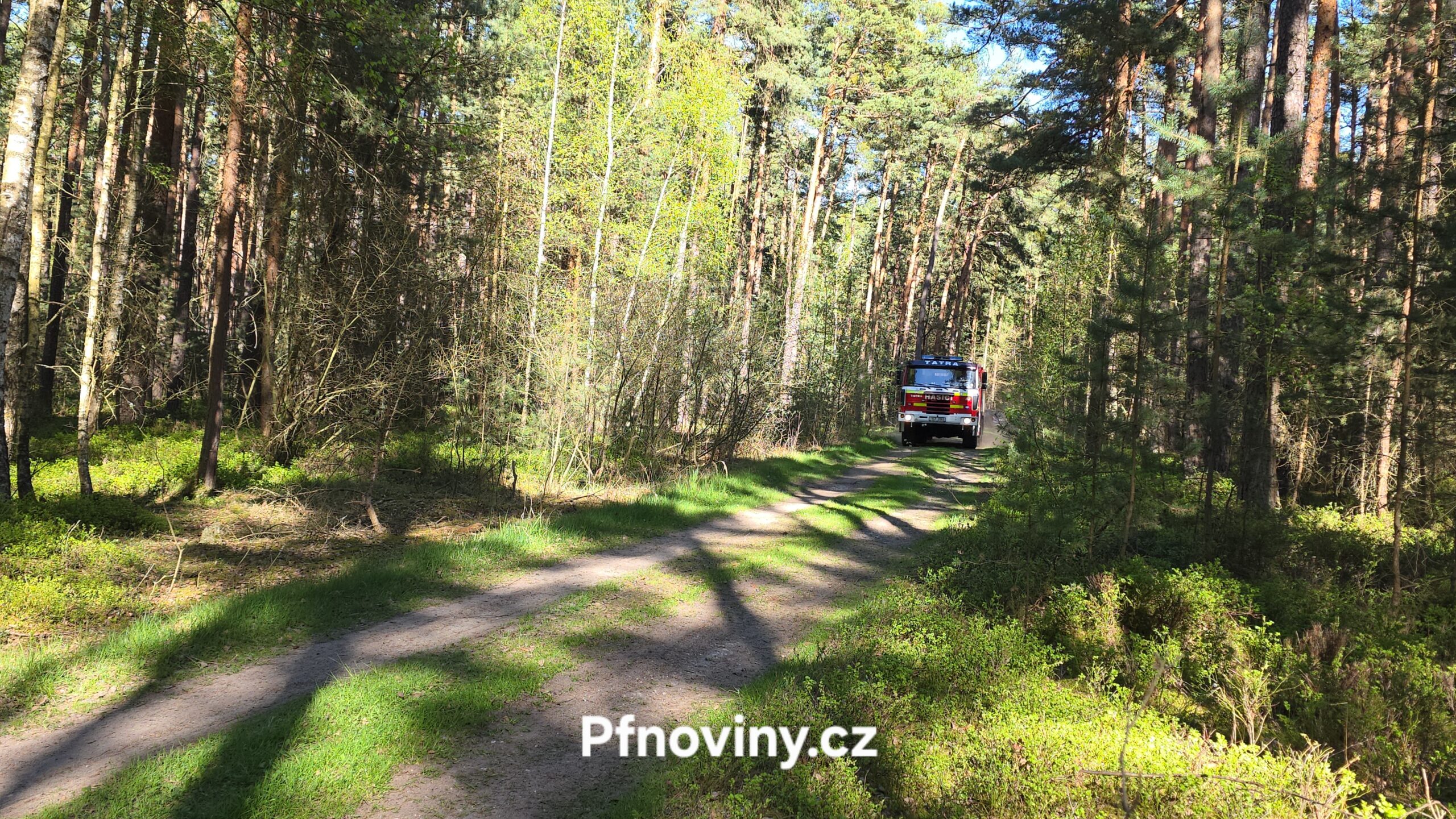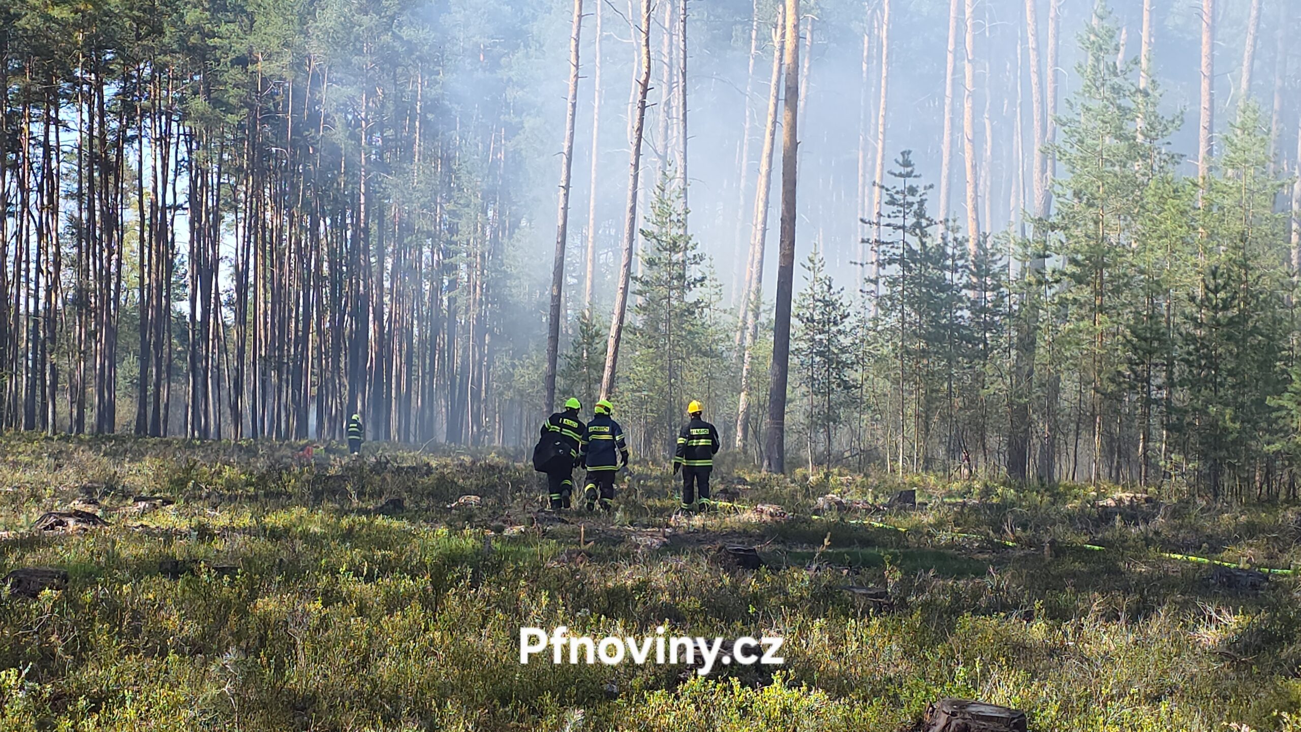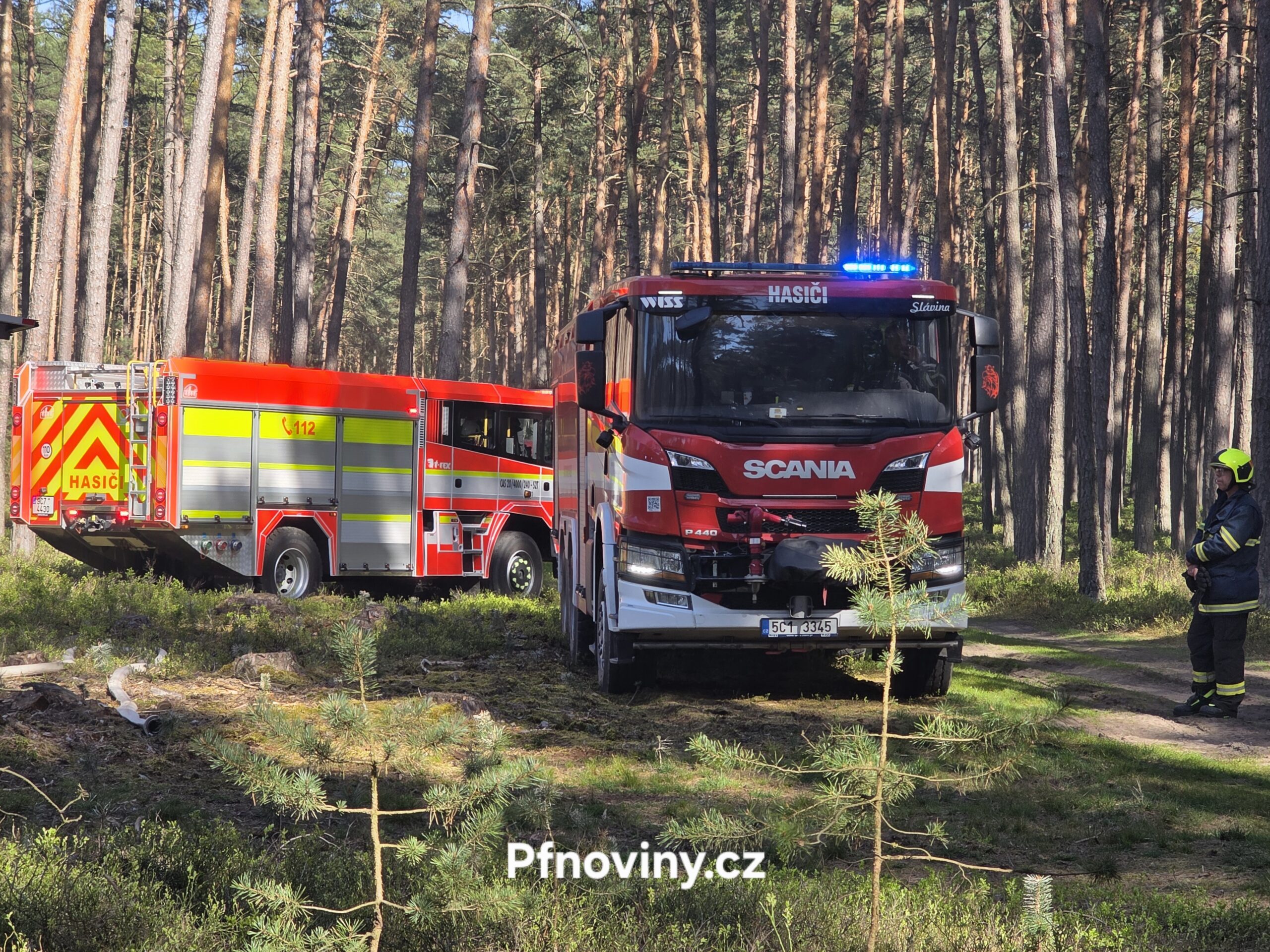 Hasiči právě zasahují u lesního požáru poblíž obce Záblatí, nedaleko Lomnice nad Lužnicí.