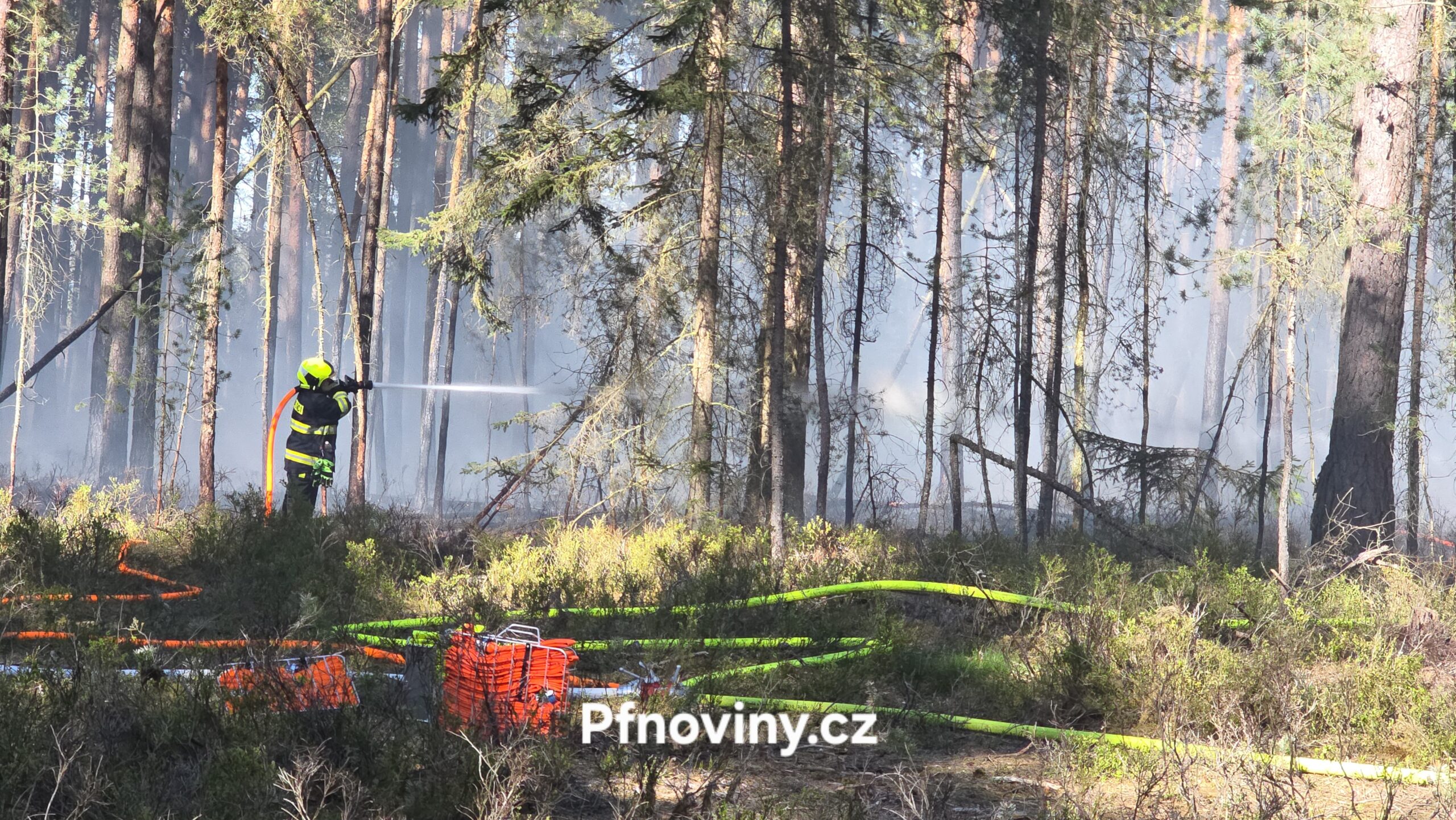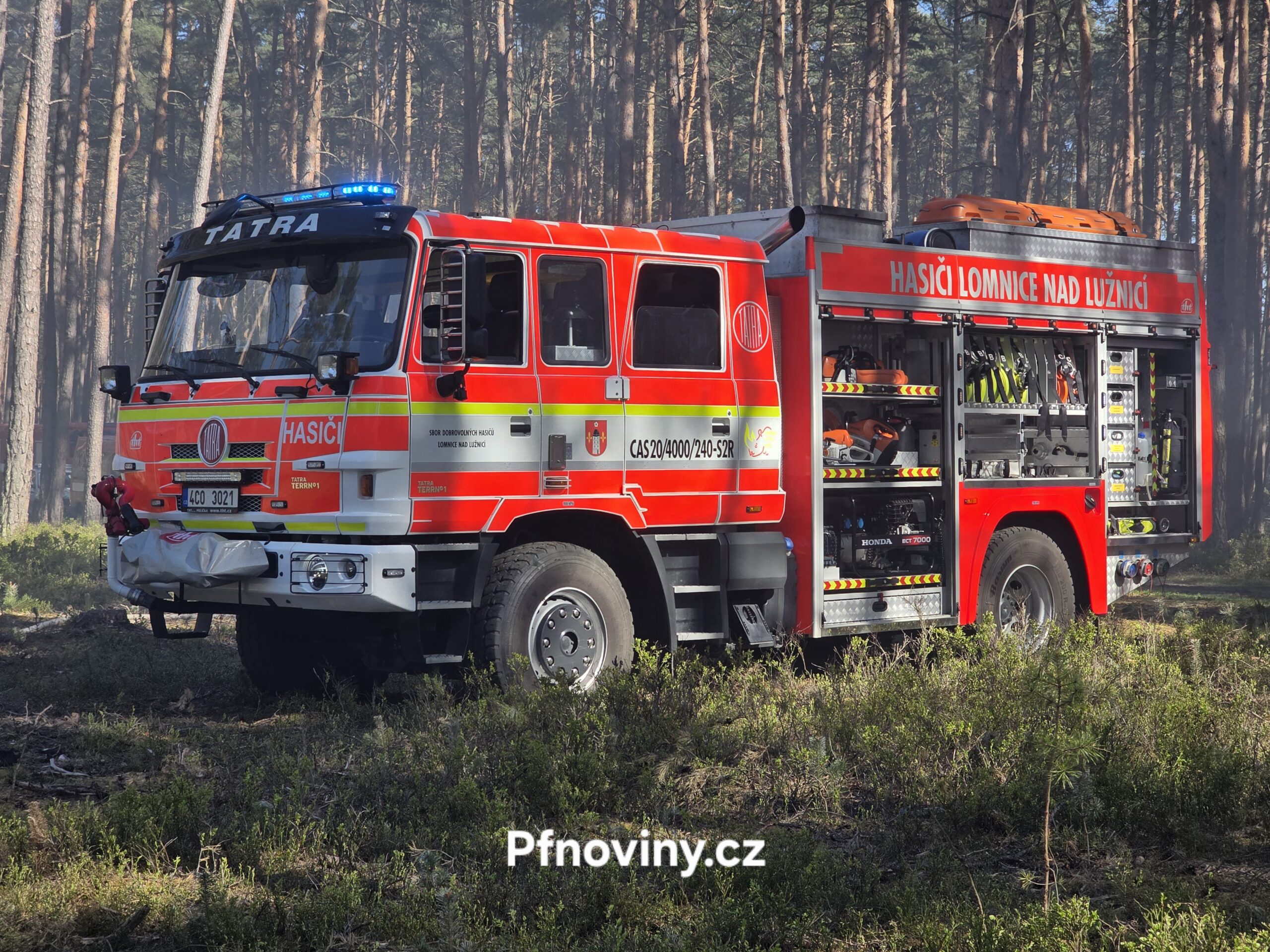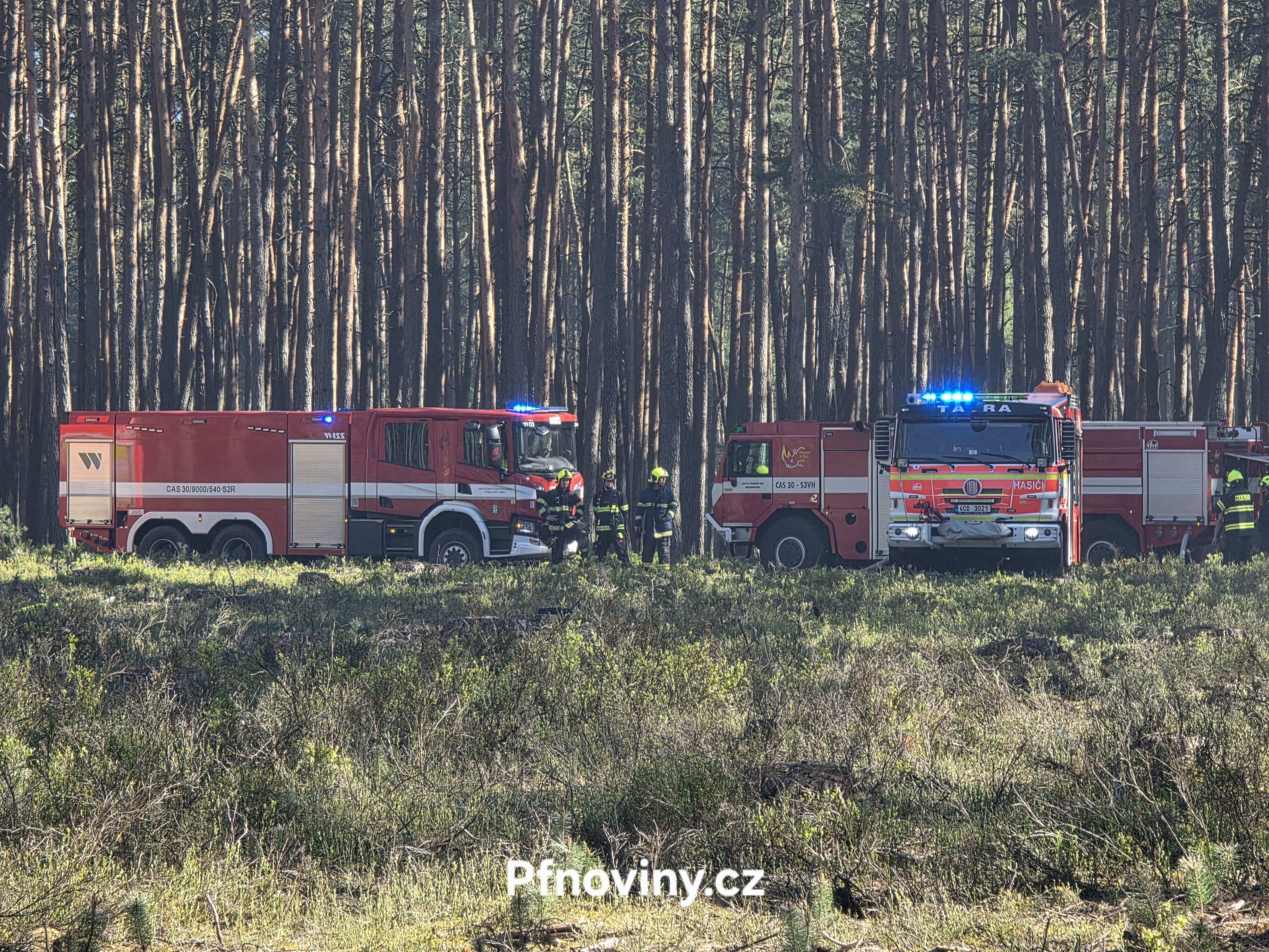 Hasiči právě zasahují u lesního požáru poblíž obce Záblatí, nedaleko Lomnice nad Lužnicí.