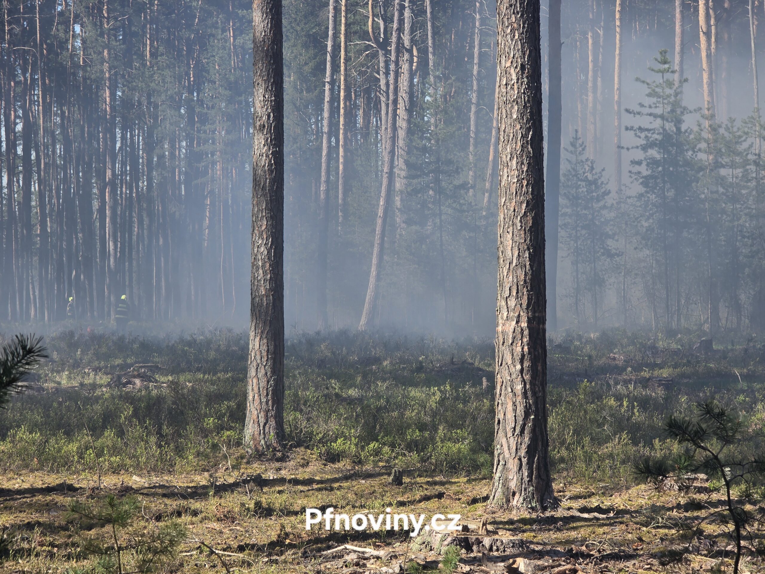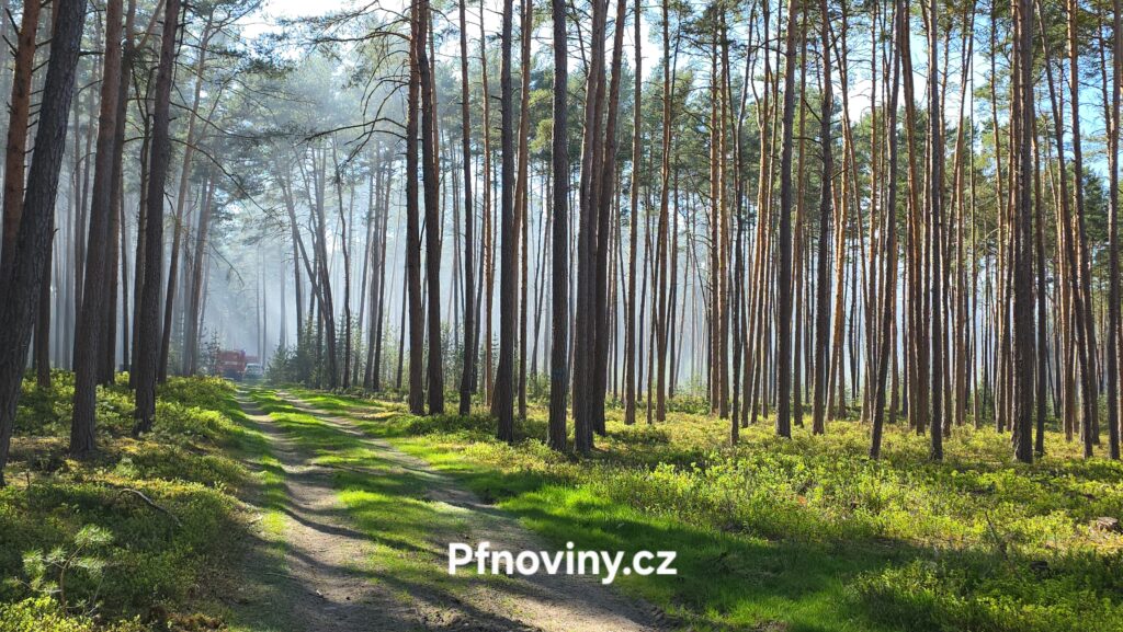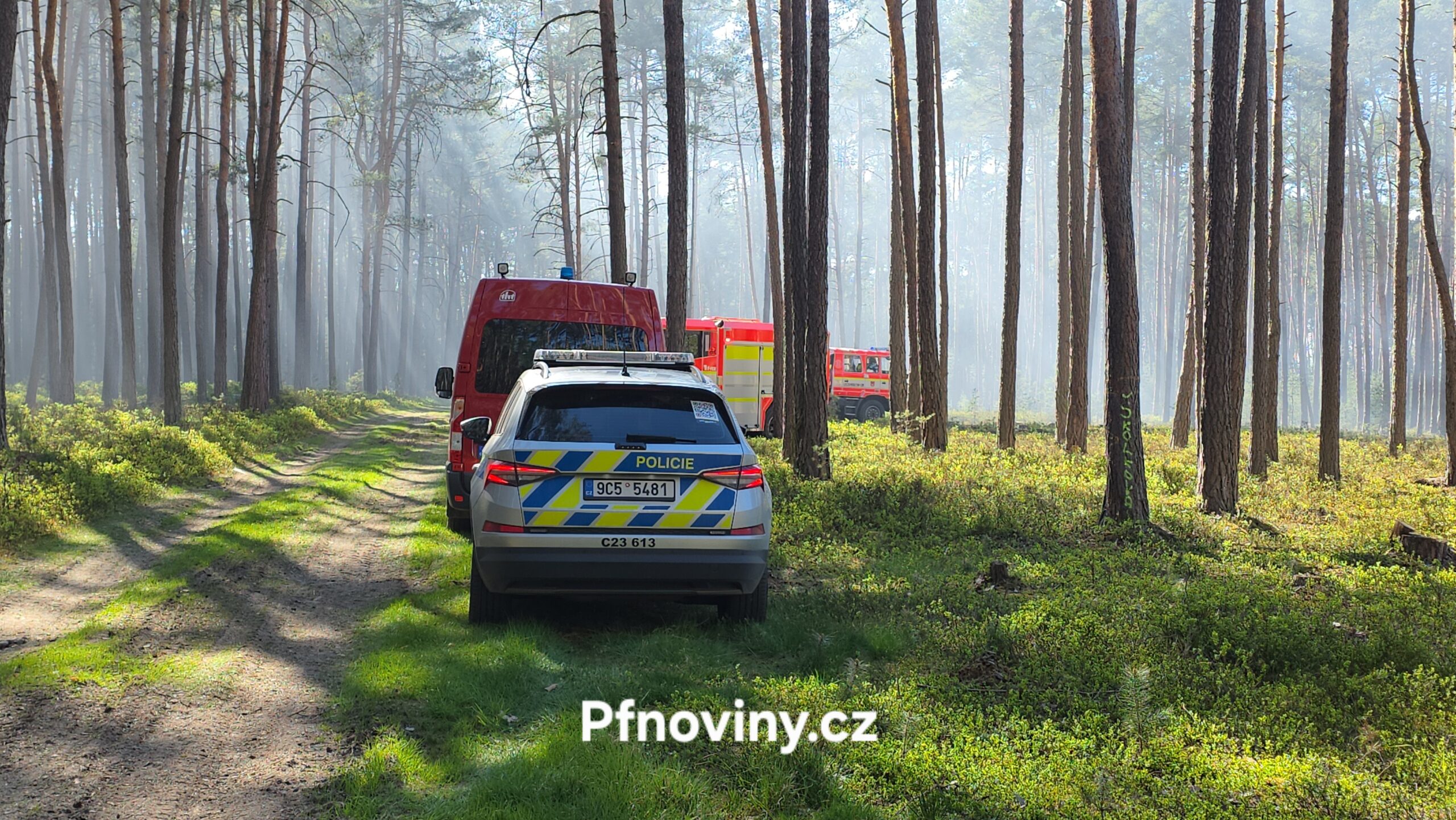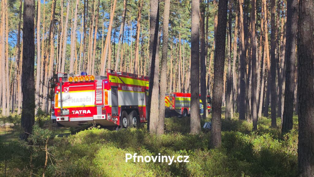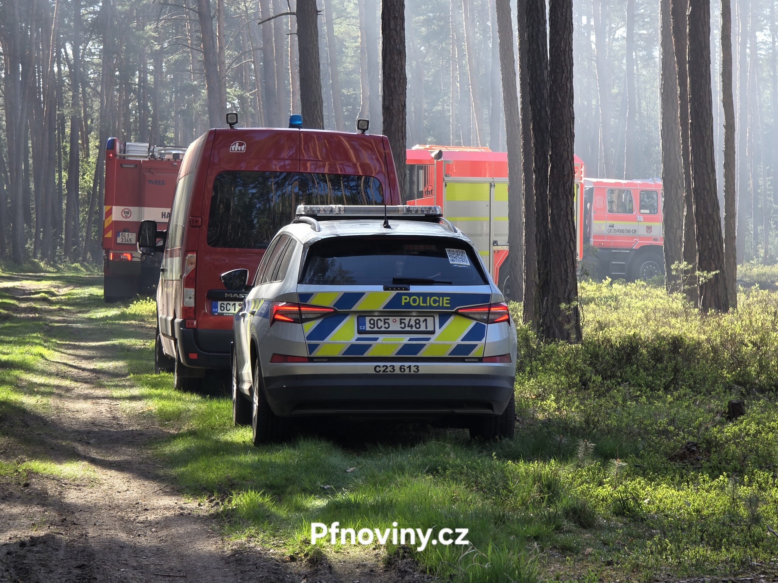 Hasiči právě zasahují u lesního požáru poblíž obce Záblatí, nedaleko Lomnice nad Lužnicí.