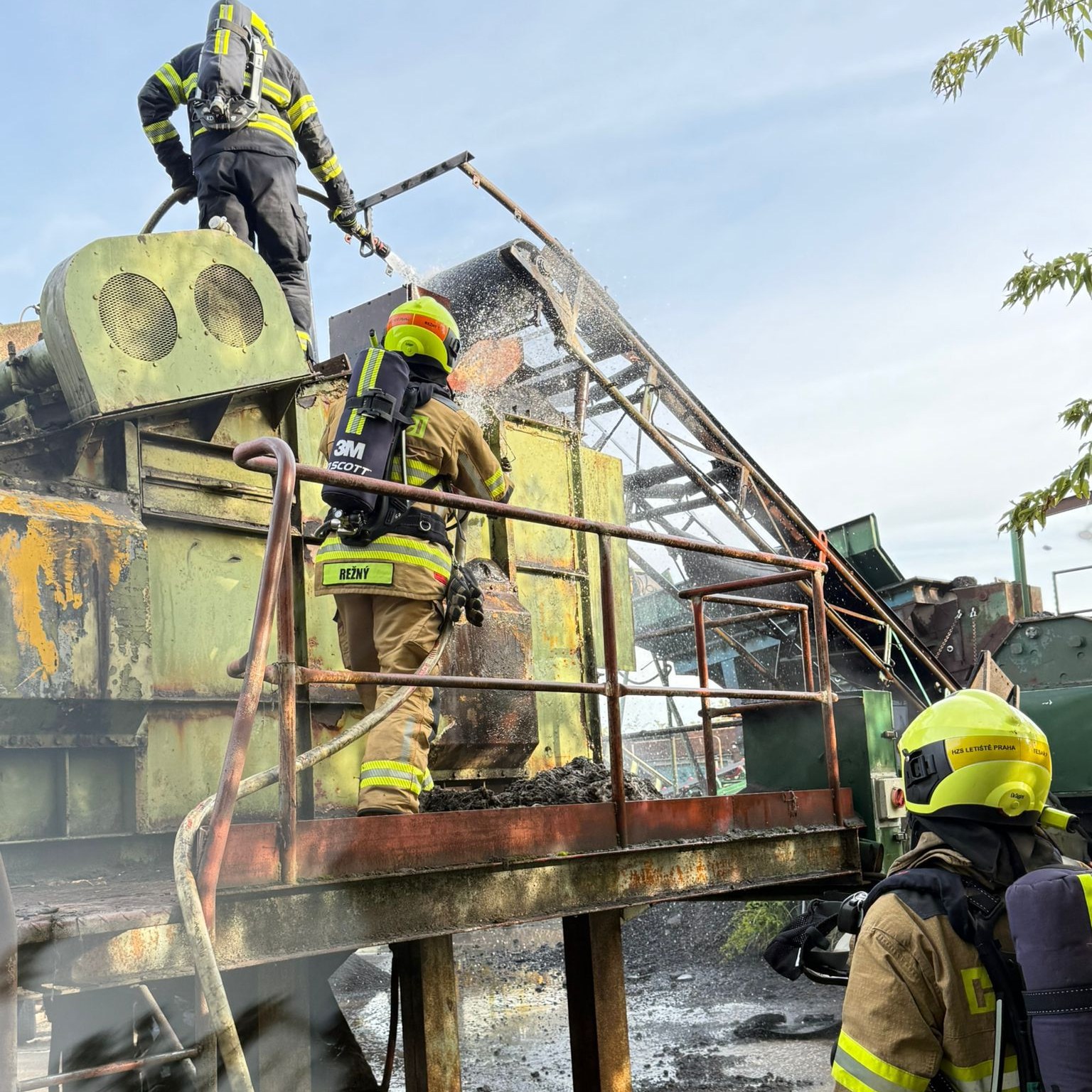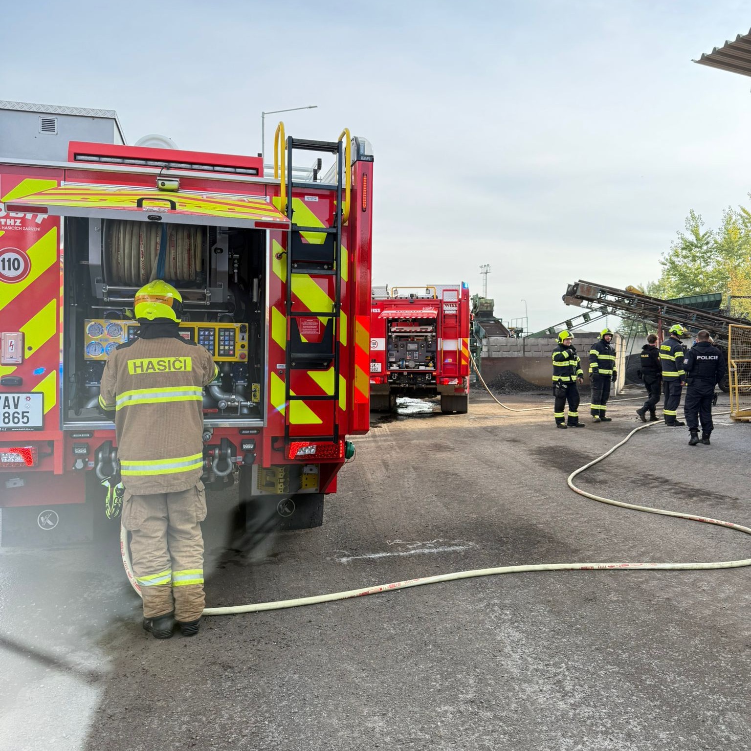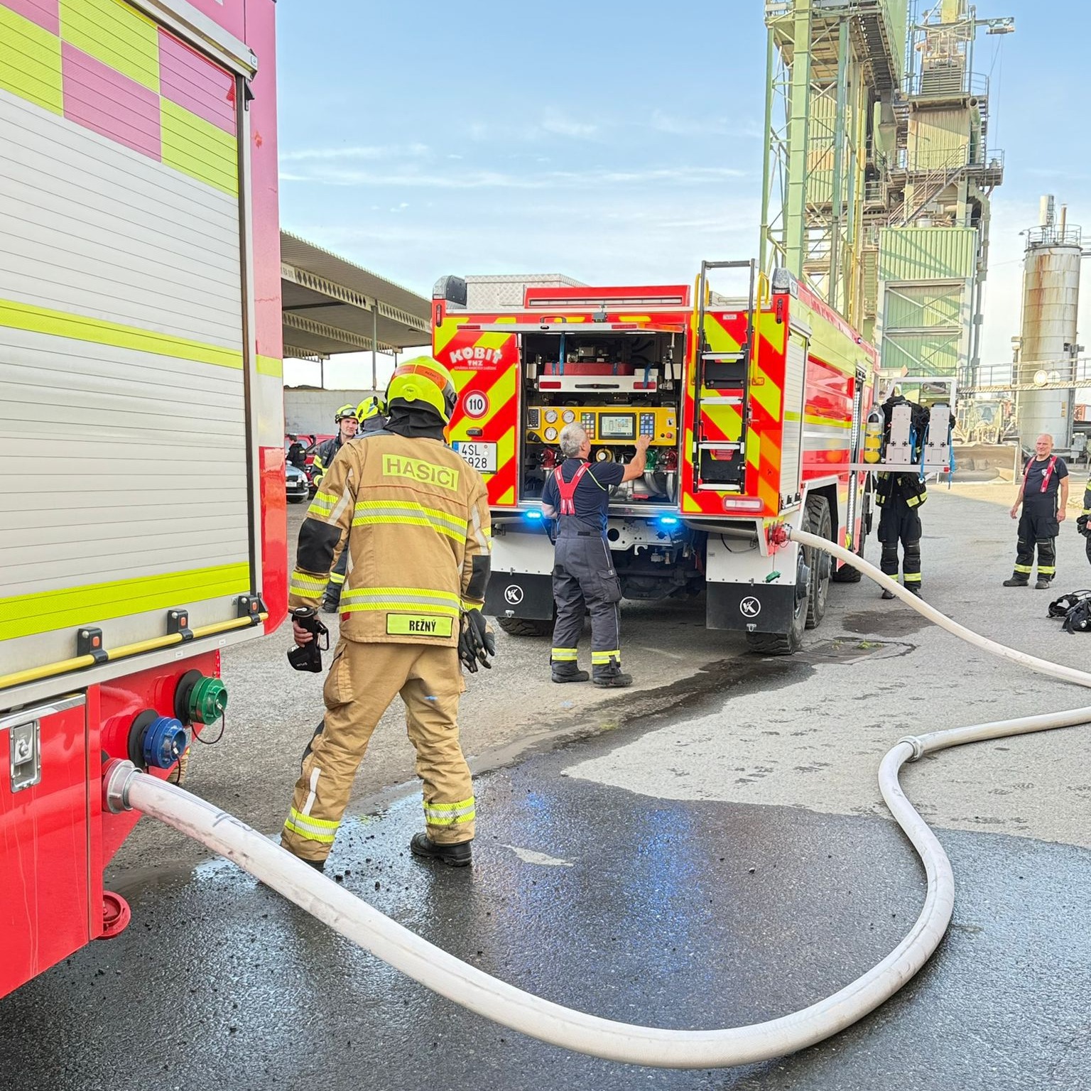K nahlášenému požáru pásu v obalovně vyjeli profesionální hasiči z Kladna, Roztok, @hasicipraha