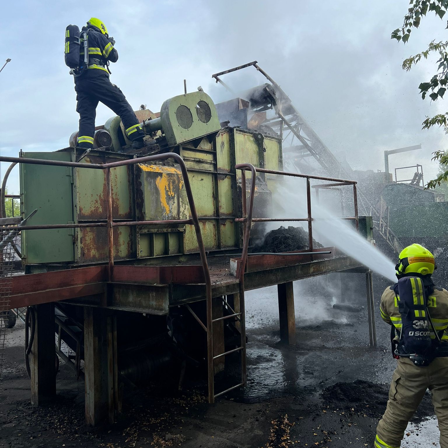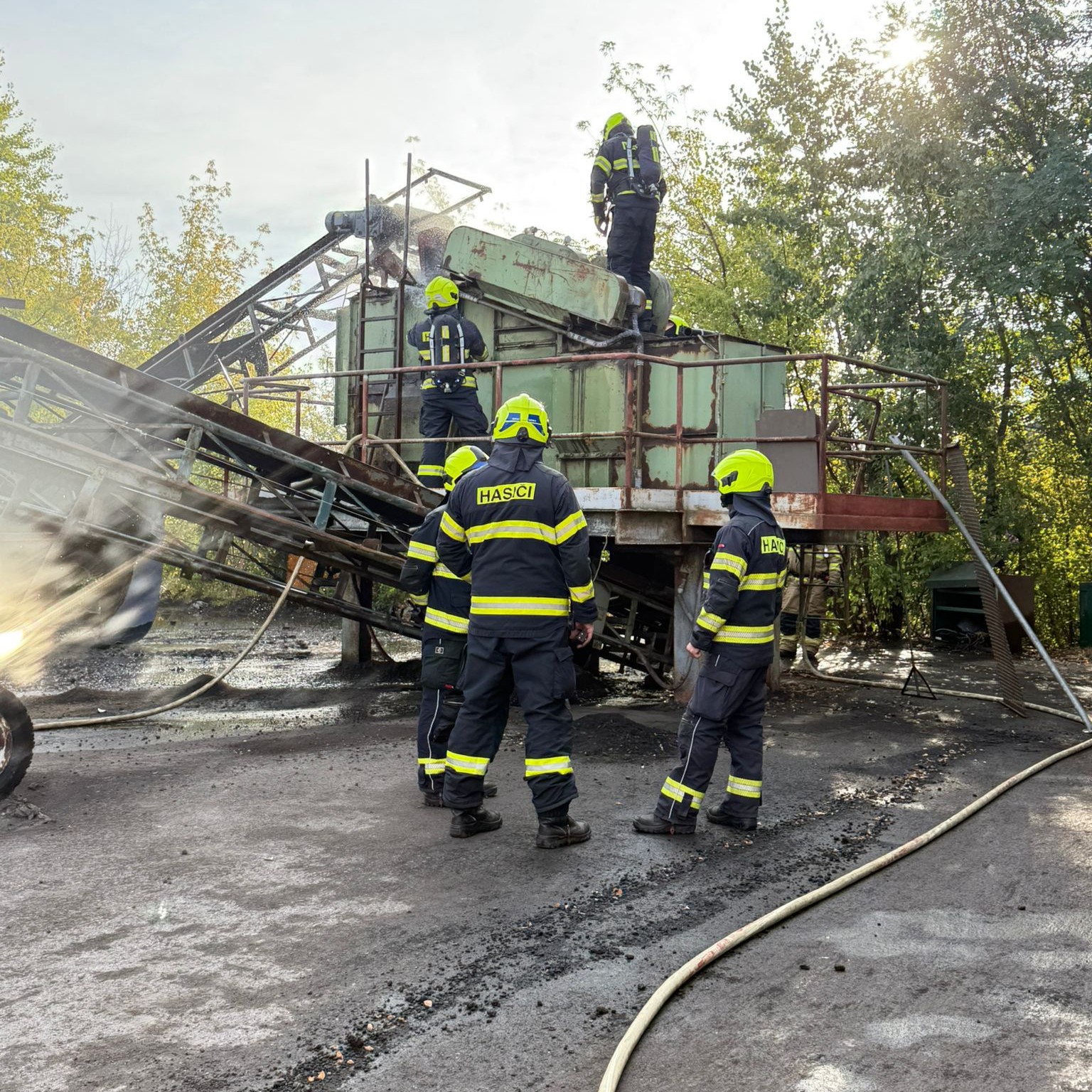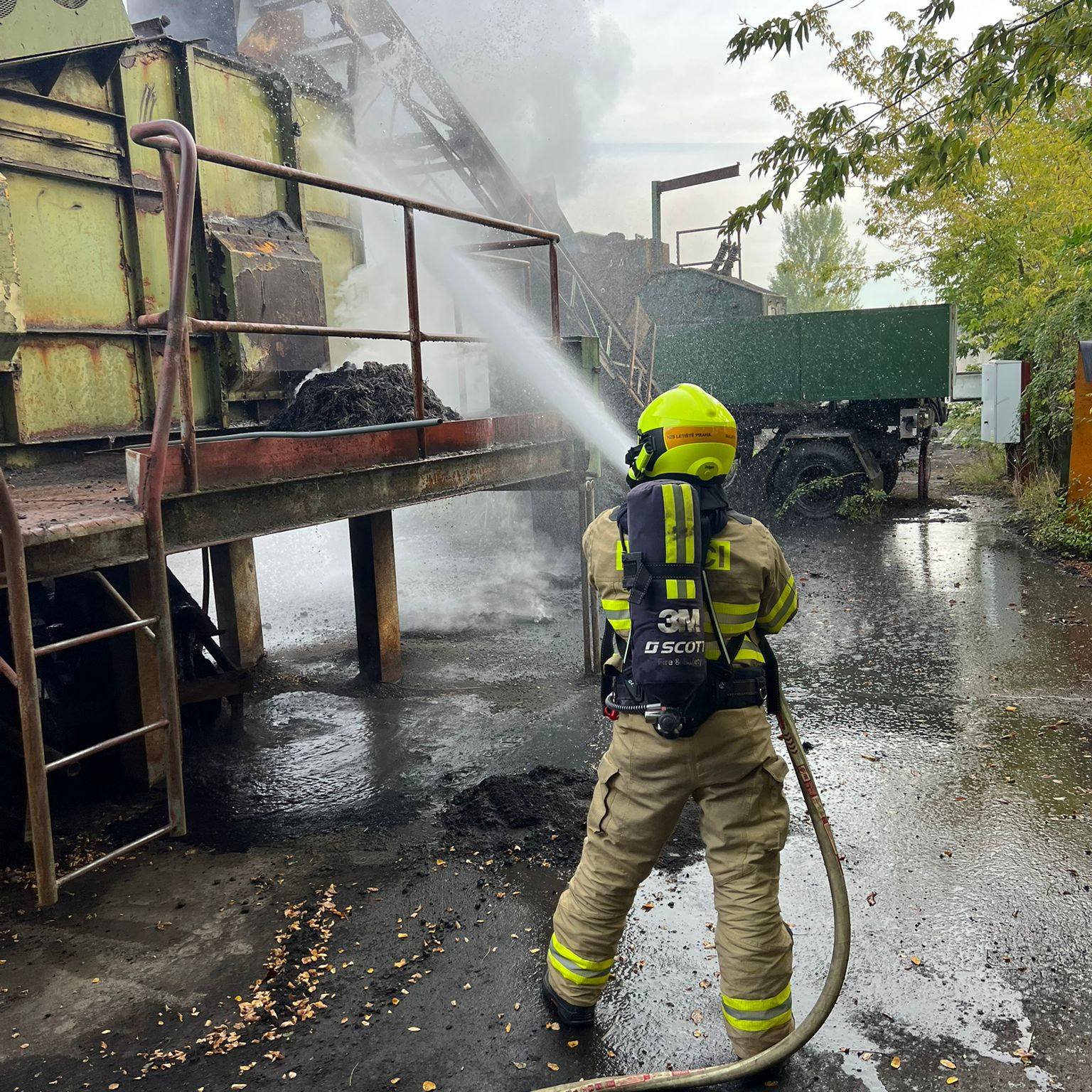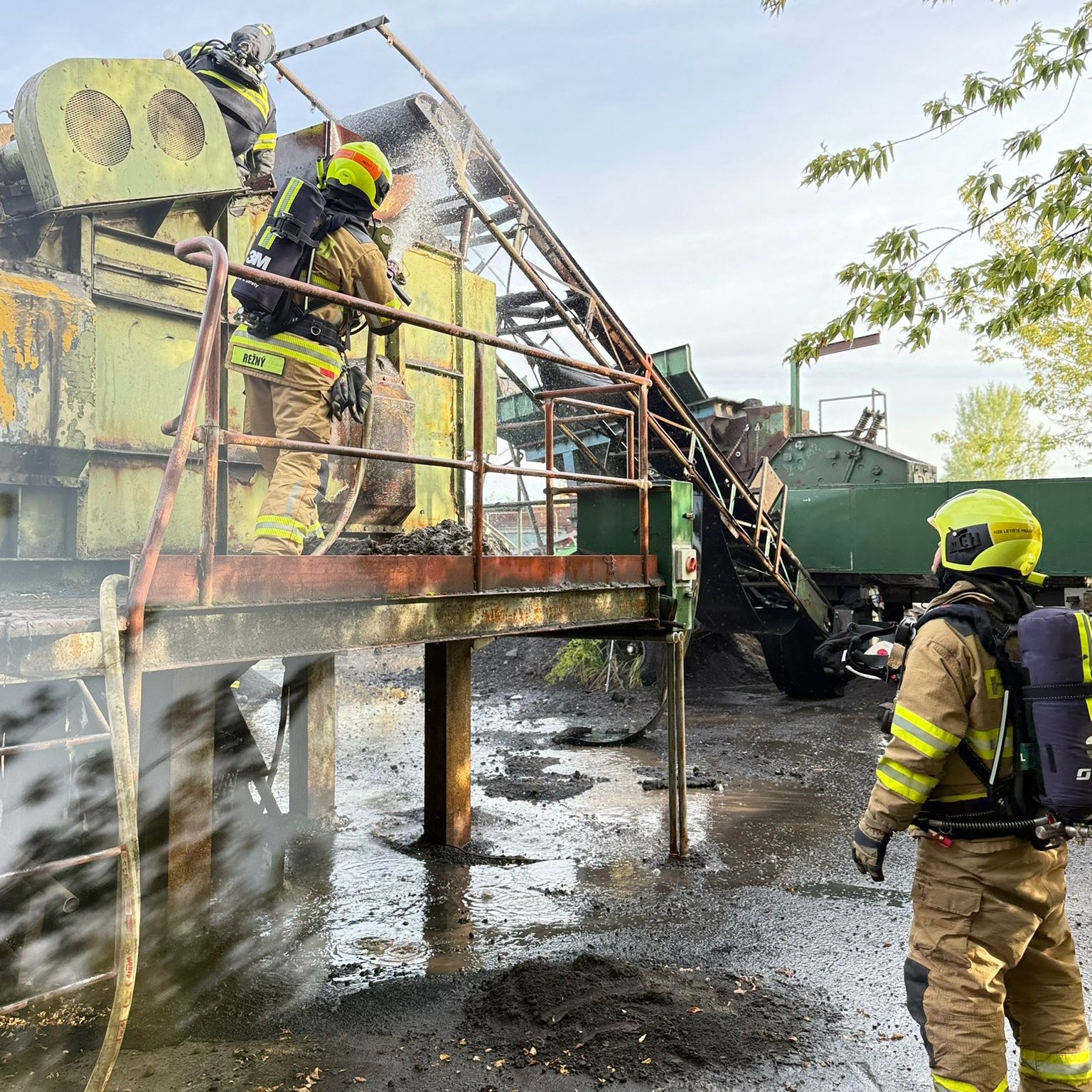 K nahlášenému požáru pásu v obalovně vyjeli profesionální hasiči z Kladna, Roztok, @hasicipraha