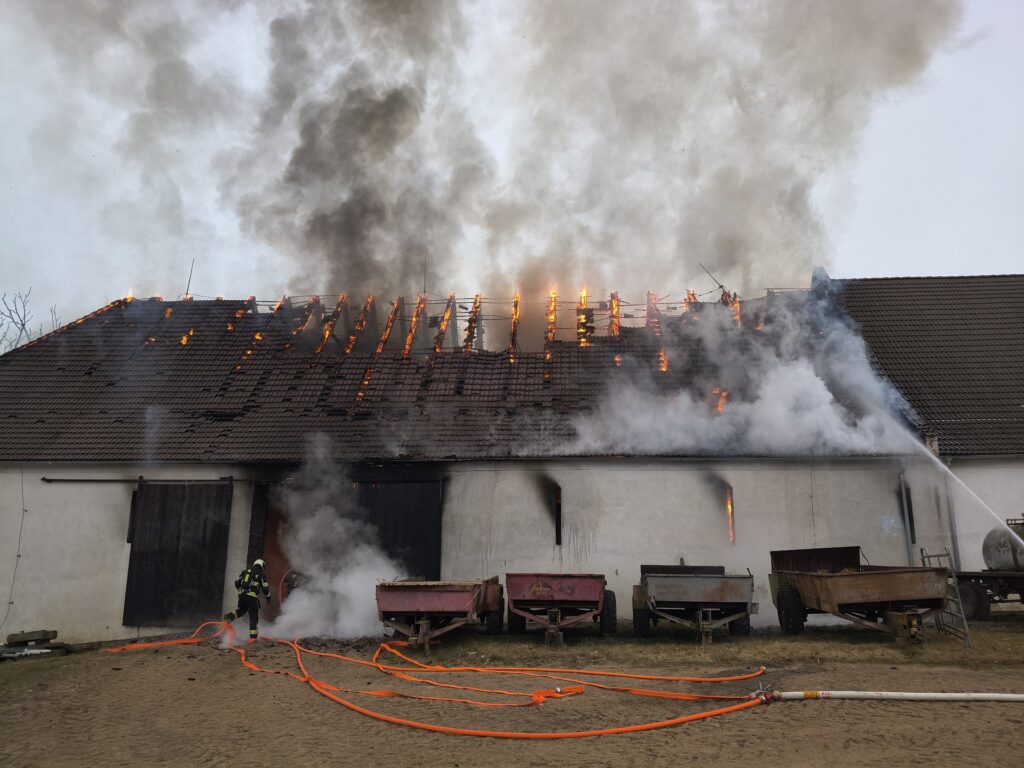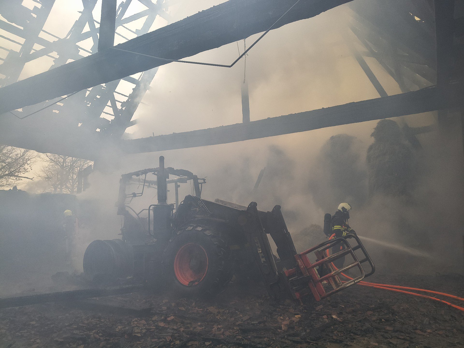 V Hrušově nedaleko Žimutic aktuálně zasahujeme u požáru traktoru a stodoly. Na místě jsou v tuto chvíli profi jednotka Týn n. V., dobrovolné jednotky Žimutice, Týn n. V. a Dolní Bukovsko, na místo míří také plošina Bronto podnikových hasičů z JE Temelín, uvedla tisková mluvčí hasičů Jihočeského kraje Monika Kocinová.