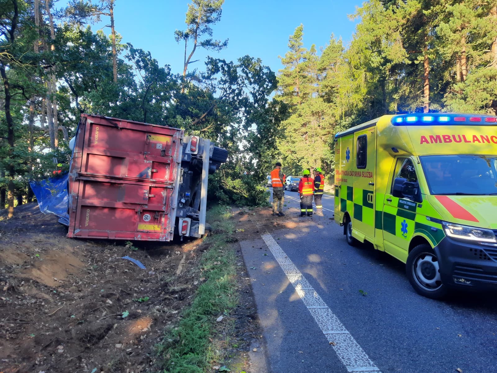Milevská profesionální jednotka spolupracovala s JSDHO Mirovice u Starého Sedla u nehody nákladního auta. Řidiče ošetřila ZZS. Hasiči řešili únik provozních kapalin, zajištění auta a na žádost policistů rozřezali strom, na kterém zůstal kamión zaklíněn.