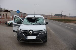 Kus ledu, který odlétl ze střechy protijedoucího nákladního vozidla prolétl čelním oknem. Řidič osobního vozidla[...]
