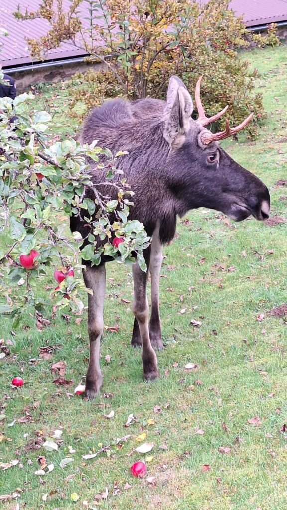 Včera dopoledne jsme na linku 158 přijali oznámení od paní z Klatovska, která ve vsi na zahradě svých sousedů viděla losa Emila. Ten se ale nemohl dostat z pozemku ven. Jelikož oznamovatelka neměla na své sousedy žádný kontakt, požádala nás o pomoc. Kolegové se tedy spojili s majitelkou chaty, která souhlasila s tím, aby naše hlídka vstoupila na její pozemek a losovi pomohla. Když kolegové z obvodního oddělení Nýrsko přijeli na místo, los ležel spokojeně pod jabloní a pojídal jablka. Na hlídku zpočátku vůbec nereagoval, ale když se zvedl a policisty zaregistroval, začal se již chovat jako divoké zvíře a kolegy po zahradě trošku prohnal.😉 Pomocí hlasitého tleskání se pak podařilo policistům Emila zahnat k plotu, který přeskočil a vydal se zpět do volné přírody. Jeho kroky vedly hned do lesů, uvedla tisková mluvčí policie Plzeňského kraje Pavla Burešová.