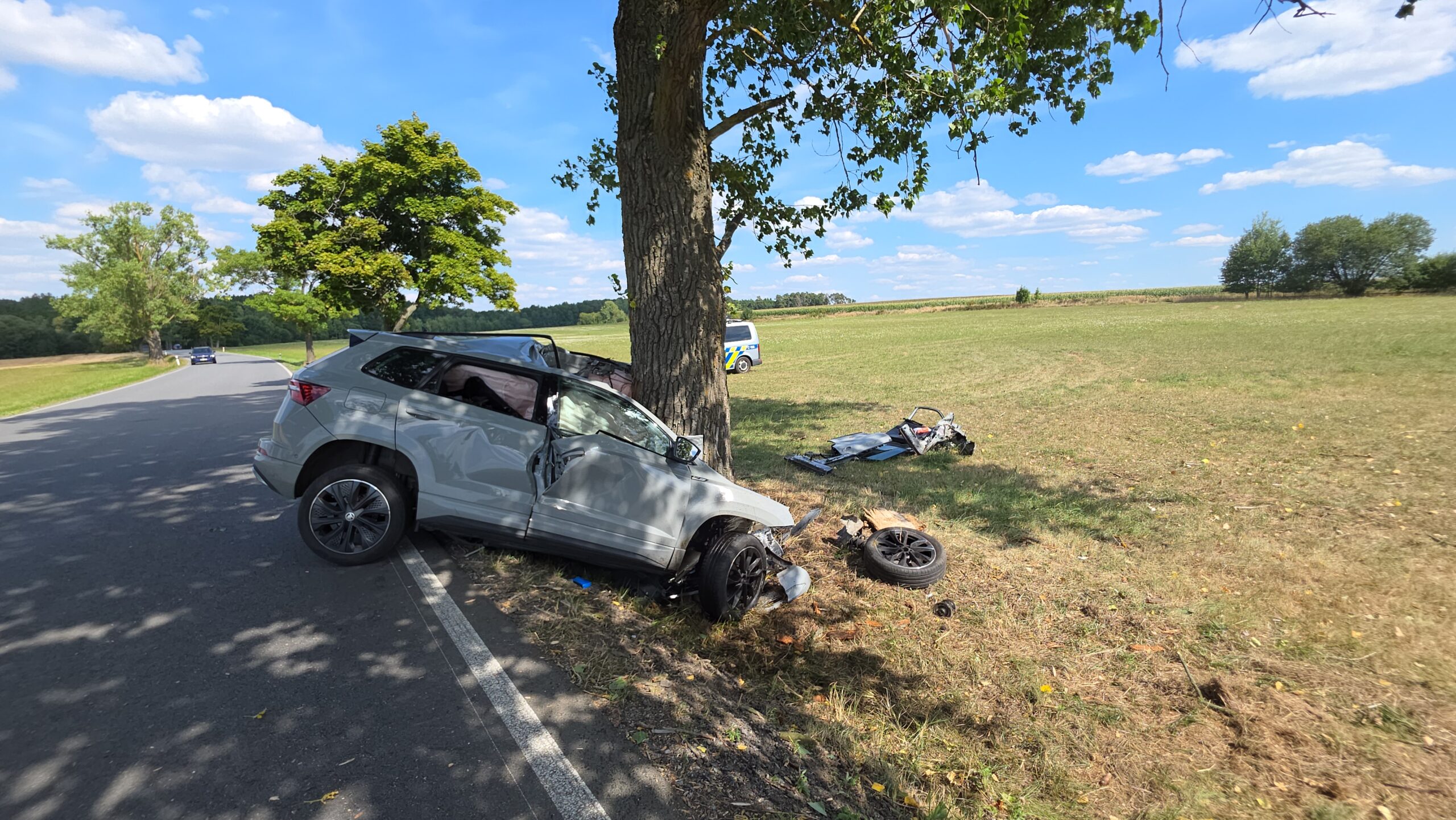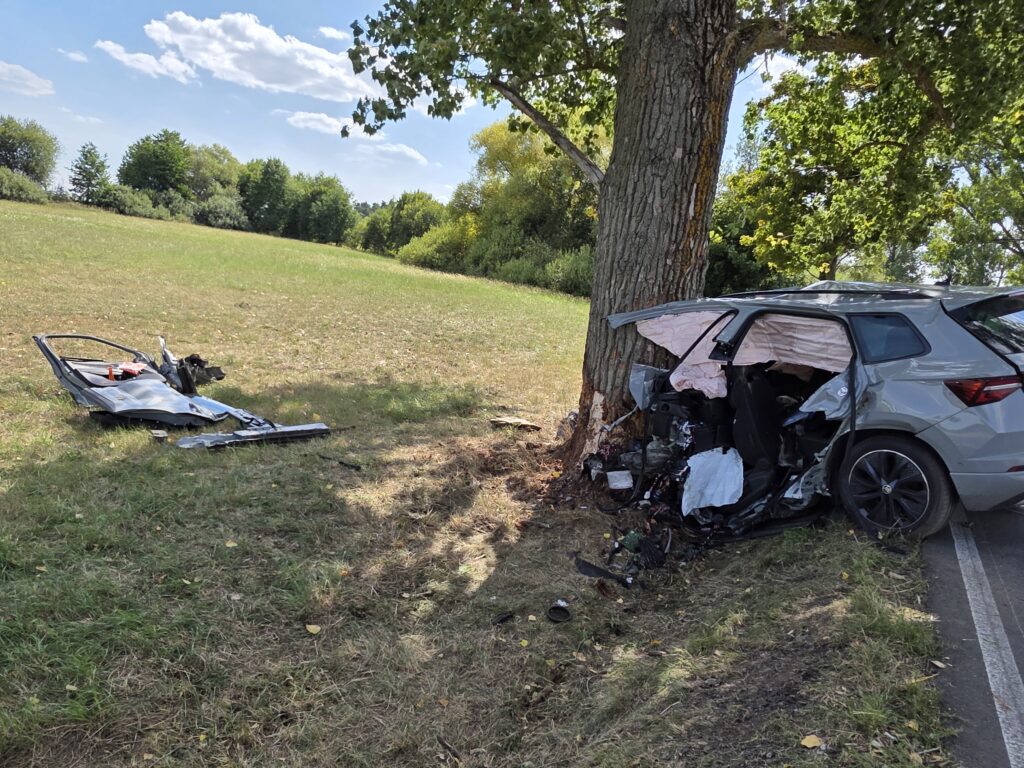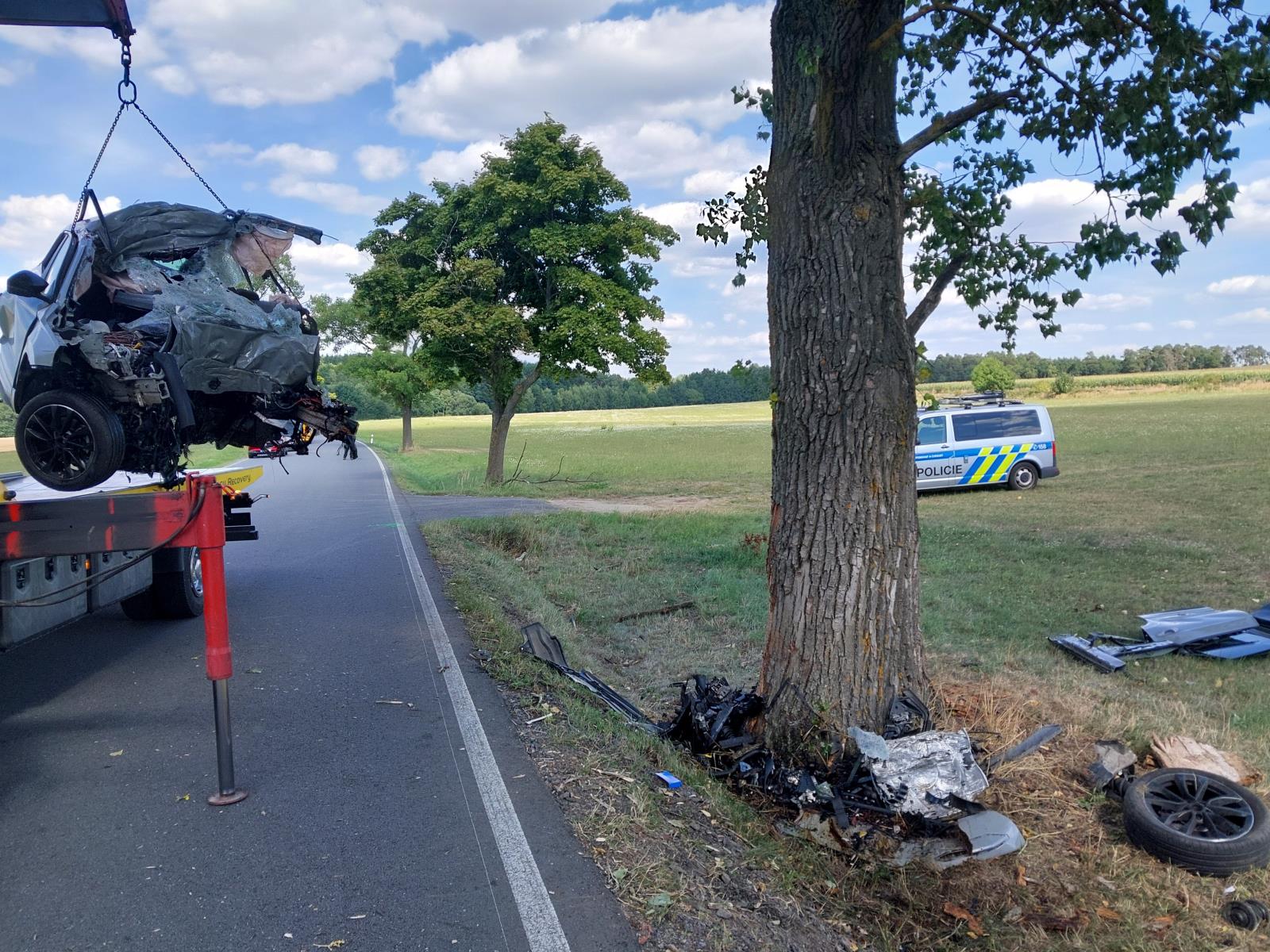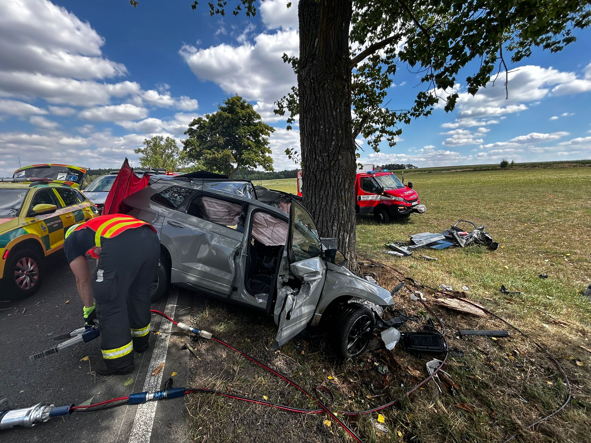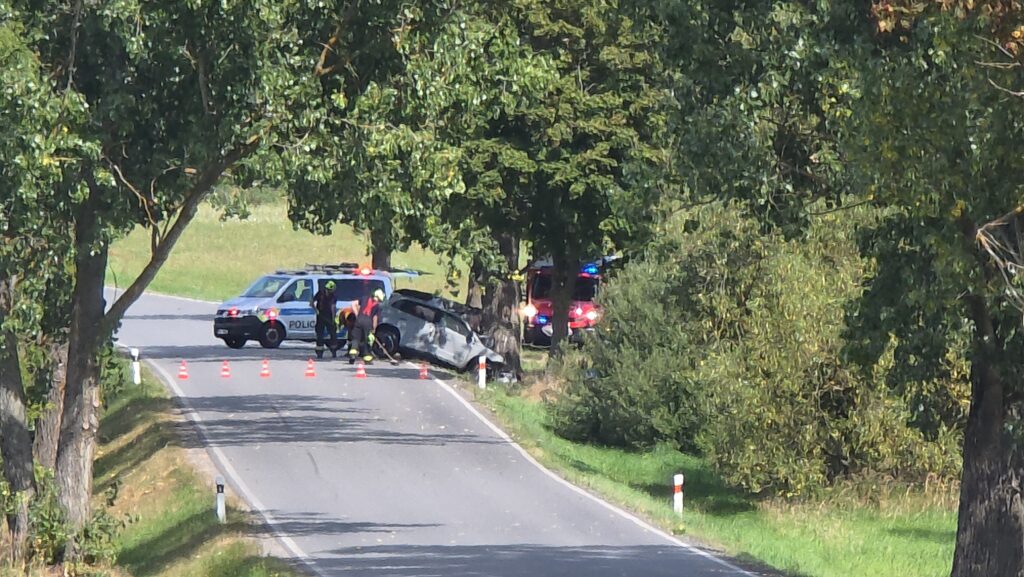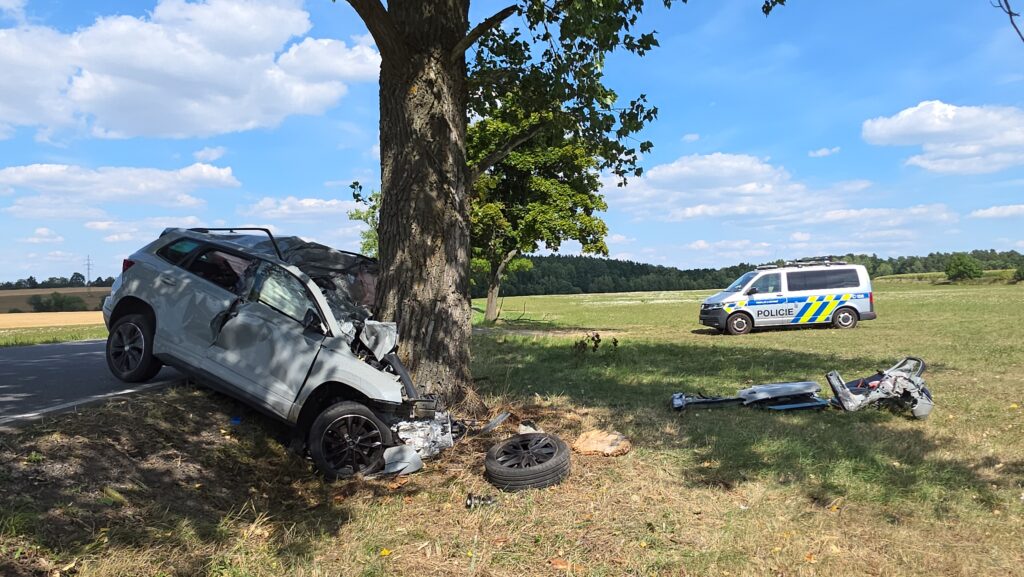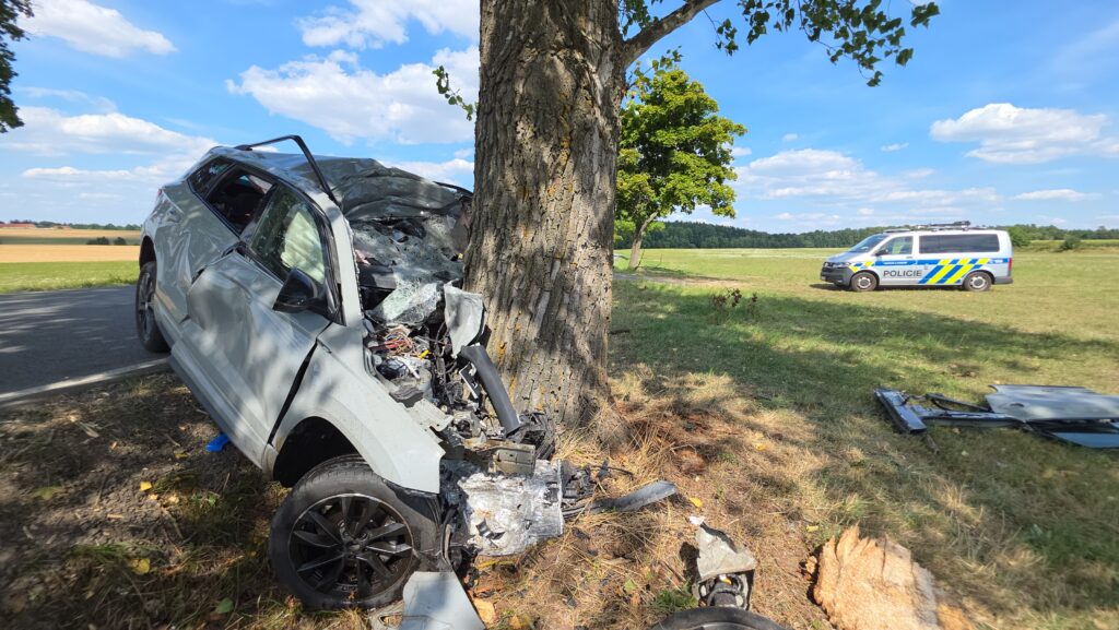Osobní automobil Škoda Karoq vyjel ze silnice a narazil do stromu. Profesionální jednotka z Tábora zaklíněného řidiče vyprostila, lékař konstatoval smrt. Hasiči prověřili, že z vozu nevytékají provozní kapaliny a provedli protipožární opatření, uvedla mluvčí hasičů Vendula Matějů.