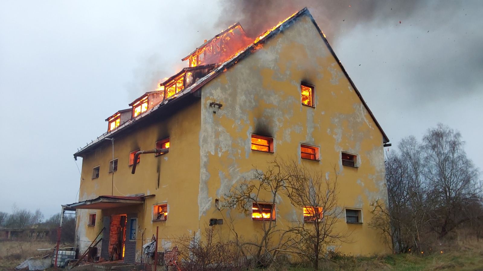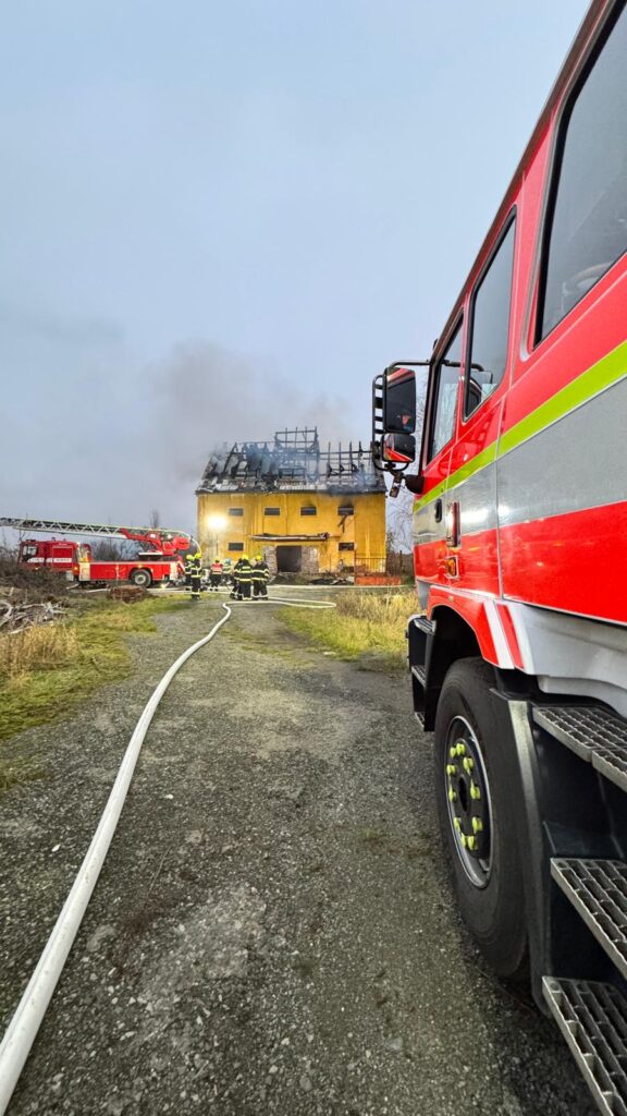 Na Českolipsku v obci Noviny pod Ralskem hoří bývalý statek