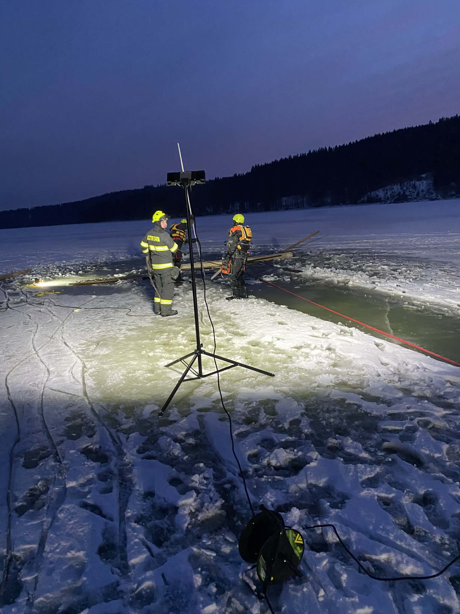 JSDHO a profi hasiči z Frymburku pracují na vytažení potopené čtyřkolky u přívozu ve Frymburku asi 50 m od břehu. Hasiči nyní prořezávají led až ke břehu a poté ji budou vytahovat navijákem z asi čtyřmetrové hloubky. Událost je bez zranění, uvedl tiskový mluvčí HZS Jihočeského kraje Vratislav Malý.