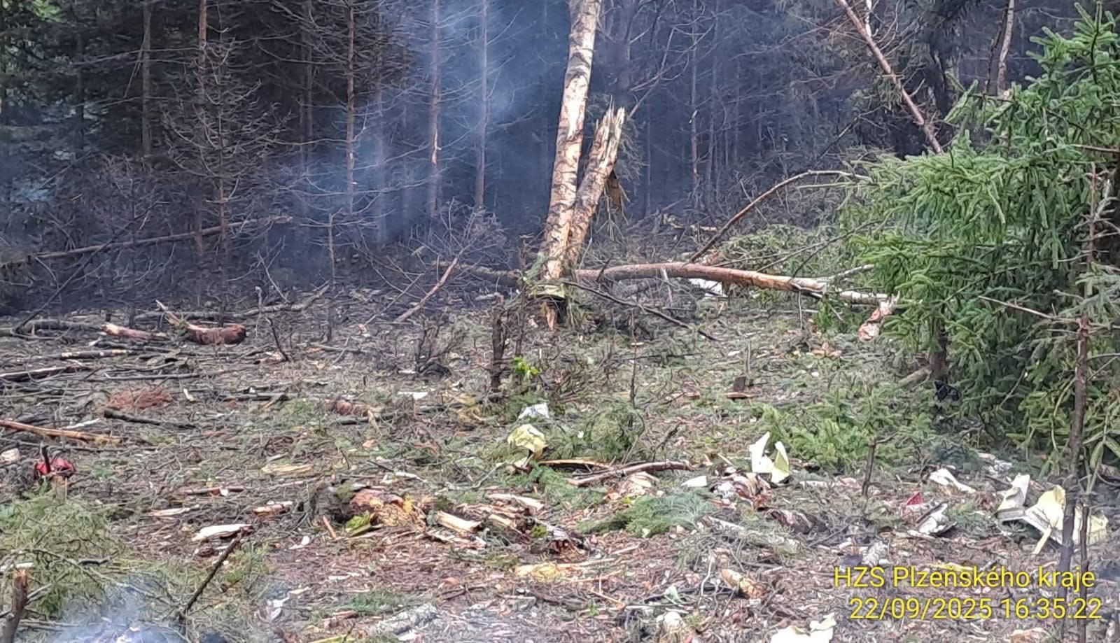 Na Plzeňsku spadlo malé letadlo, po pádu začalo hořet.