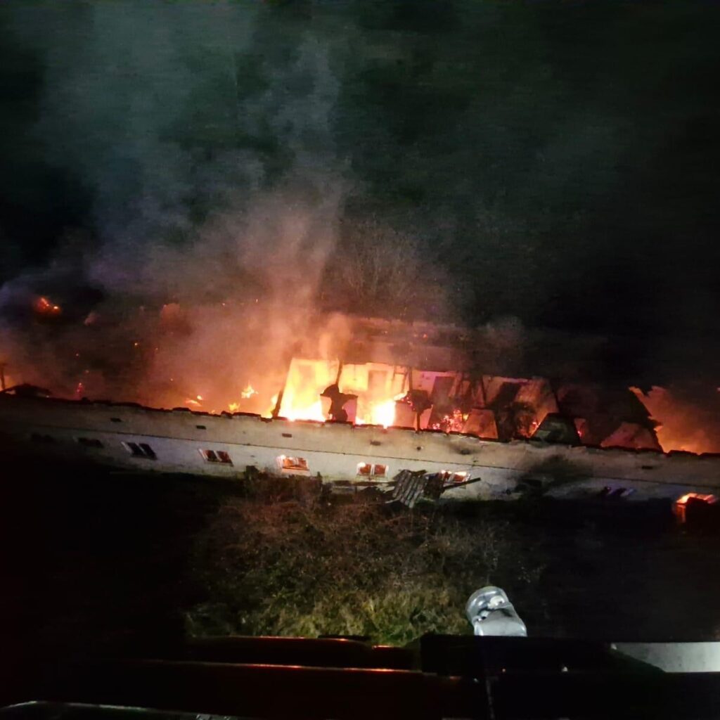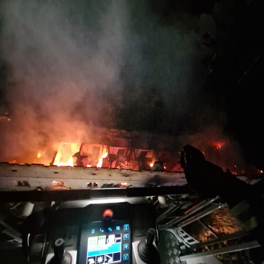 Po příjezdu na místo velitel zásahu potvrdil požár budovy o přibližných rozměrech 8×30 metrů v plném rozsahu a vyžádal si další síly a prostředky. Následně byl požární poplach zvýšen na druhý.