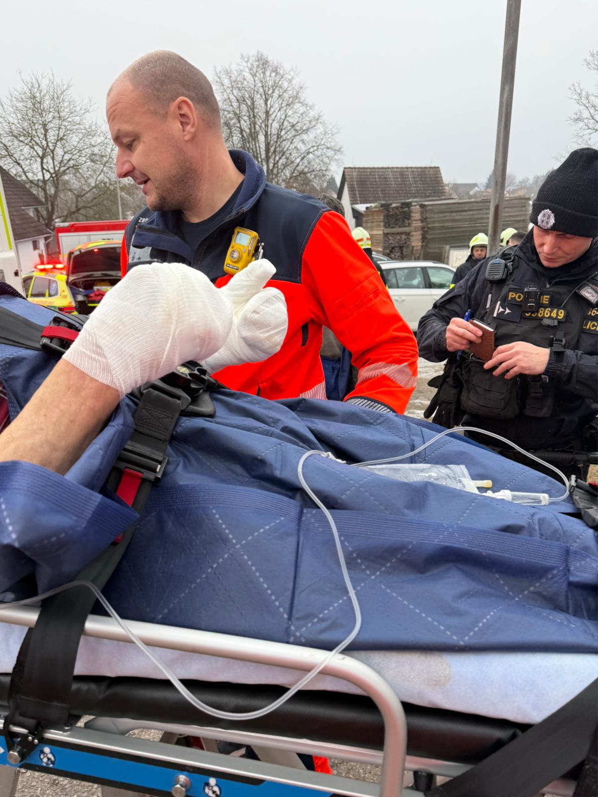 Záchranáři ošetřili seniora, který utrpěl popáleniny na rukou a v obličeji. Jeho zdravotní stav si nevyžádal transport do popáleninového centra, a proto byl po poskytnutí přednemocniční neodkladné péče převezen do nemocnice v Táboře na chirurgickou ambulanci, uvedla tisková mluvčí Jihočeské Záchranné služby Petra Kafková.