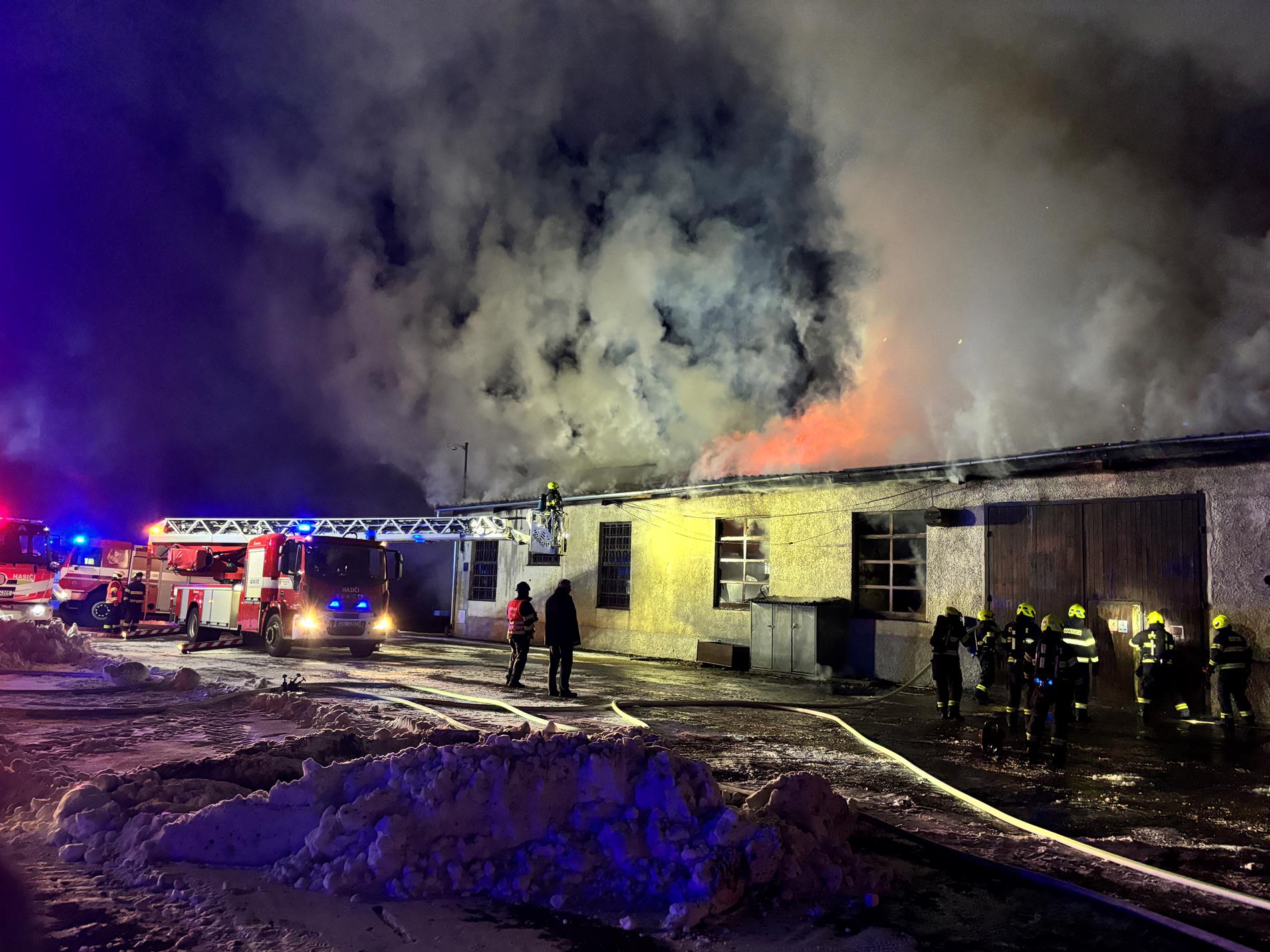 Střecha budovy se propadla a tak nebylo možné vést zásah uvnitř budovy. Na místě jsme řídili dvě čerpací stanoviště – na nedalekém rybníce a z hydrantu. Na místo jsme povolali správu a údržbu silnic, protože odtékající hasební voda v tomto počasí namrzá a pohyb na požářišti je pro zasahující nebezpečný. Současně jsme povolali statika, který prohlédne stav budovy a ze Záchranného útvaru HZS ČR velitel zásahu vyžádal pásové rypadlo, které nám pomůže s rozebíráním objektu a dohašováním skrytých ohnisek.