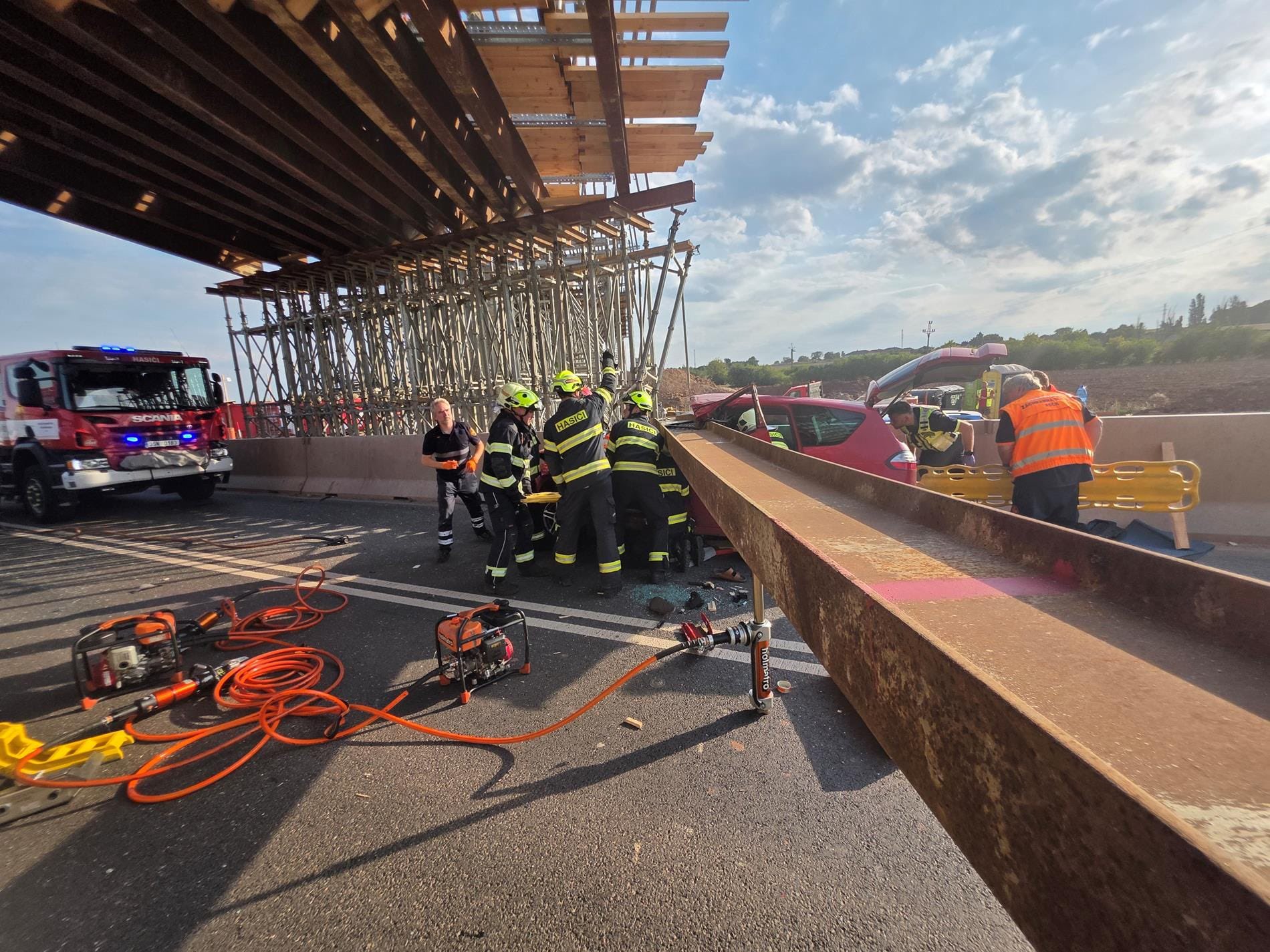 Hasiči následně na mostě zajistili další traverzu, u které bylo riziko pádu. Zároveň bylo nutné zajistit narušené lešení. Na místo je povolán statik, který prověří stav mostní konstrukce a zhodnotí, zda je možné obnovit provoz pod mostem. V současné chvíli je provoz na komunikaci uzavřen.