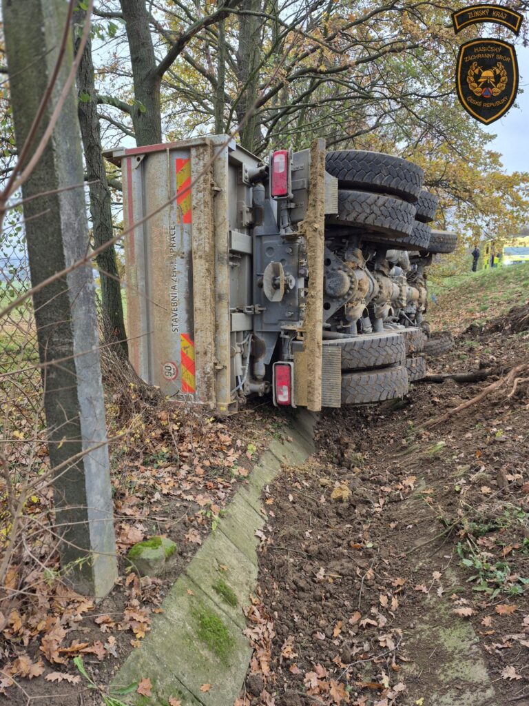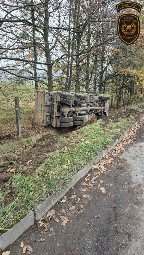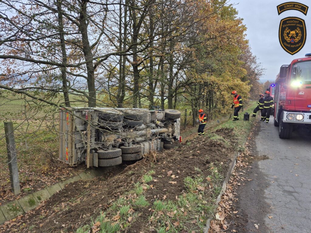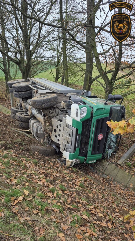 Profesionální hasiči ze Zlína a Otrokovic zasahovali dnes dopoledne v Otrokovicích – Kvítkovicích u havárie nákladního vozidla, se kterým sjel řidič ze silnice a převrátil se na bok. Řidič skončil v péči posádky zdravotnické záchranné služby a následně v nemocnici k provedení dalších vyšetření.