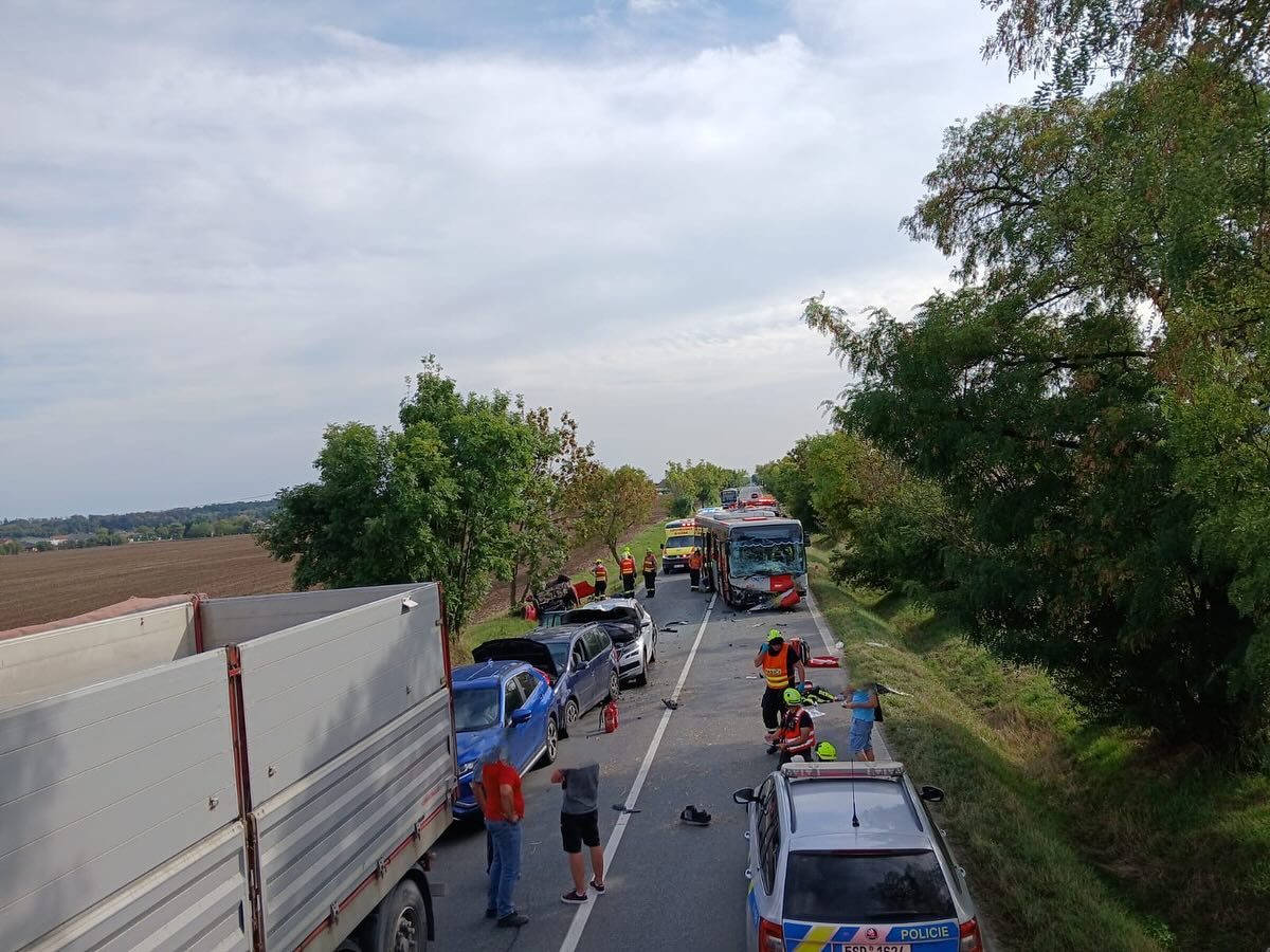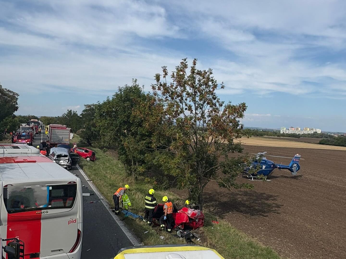 Nehoda pěti vozidel a autobusu uzavřela silnici 1/9 u Neratovic