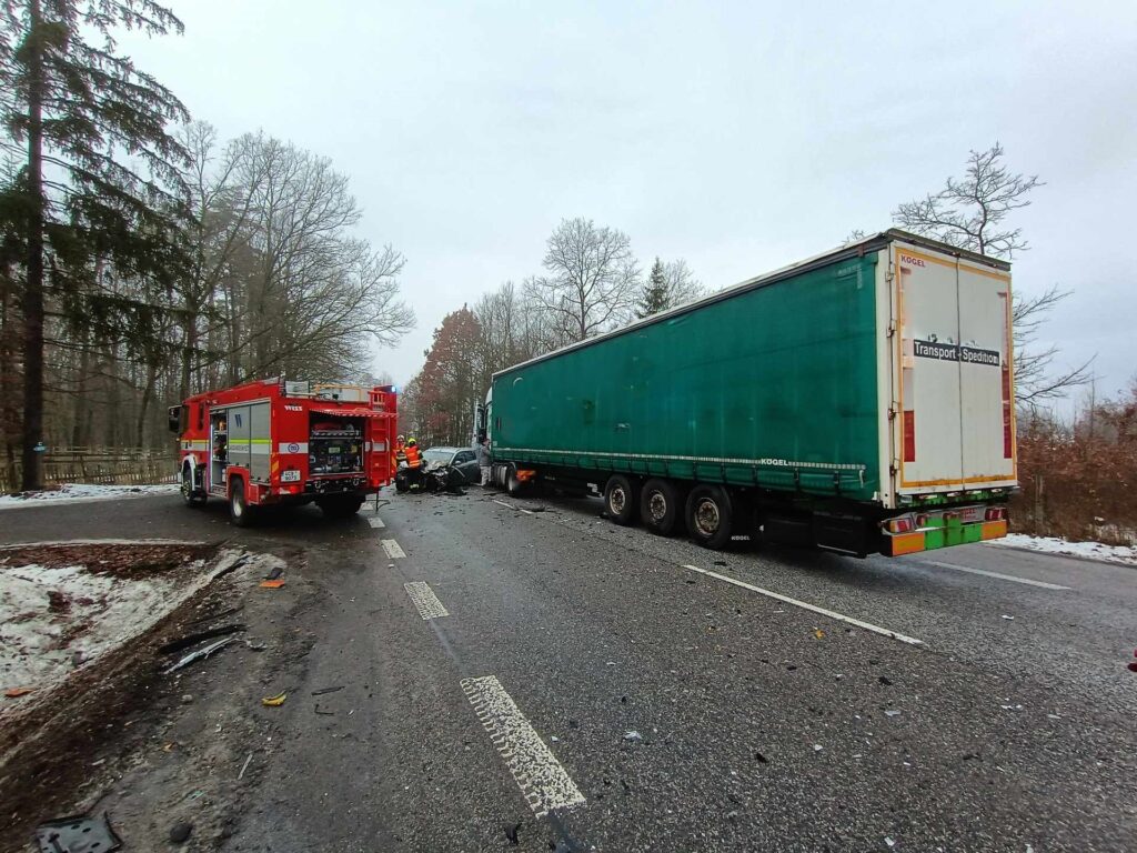 Dopravní nehoda osobního auta s kamionem byla na Zdravotnické operační středisko ZZS JčK nahlášena krátce před 11. hodinou. Na místo vyjela lékařská i záchranářská posádka z Písku.