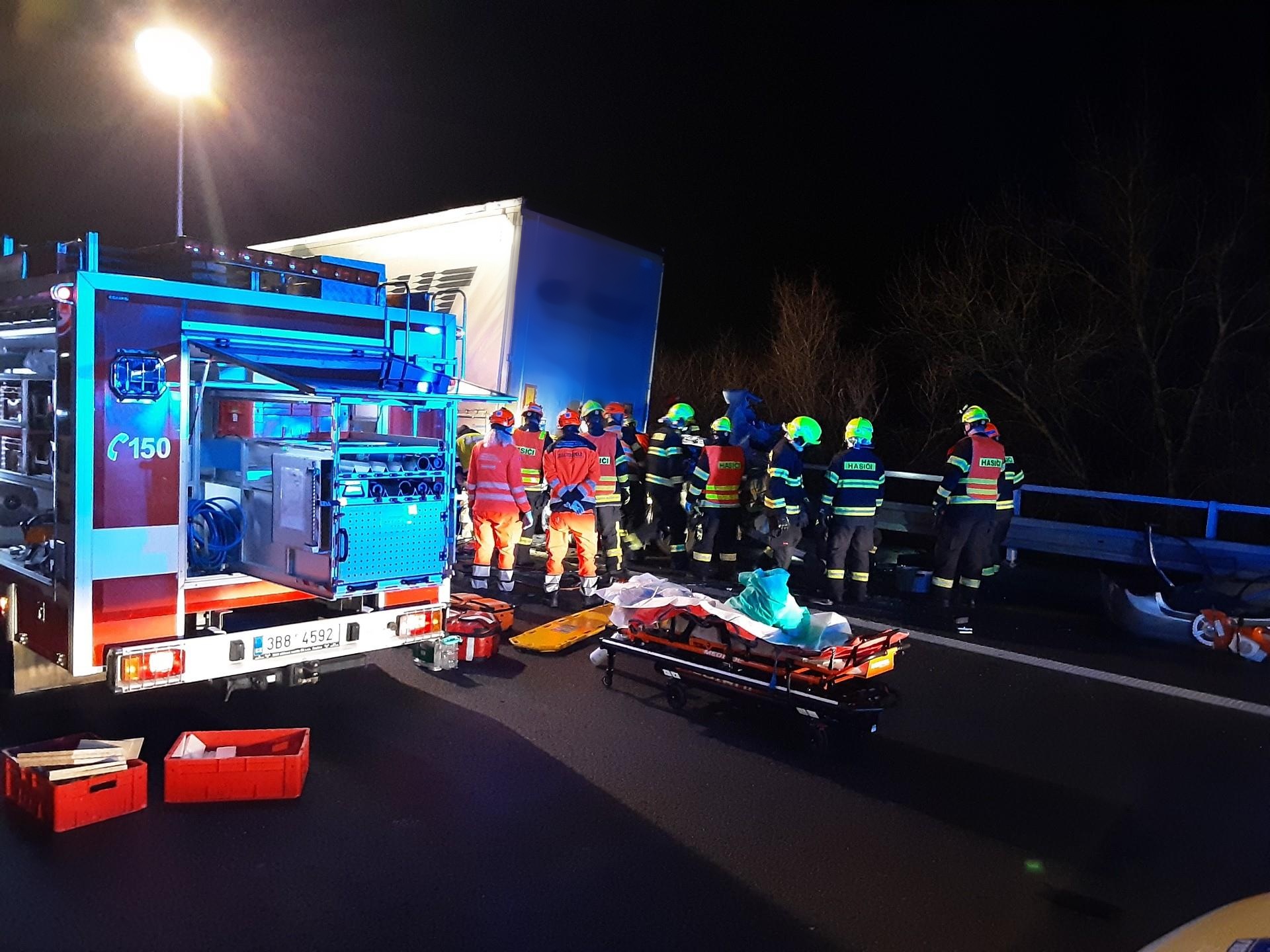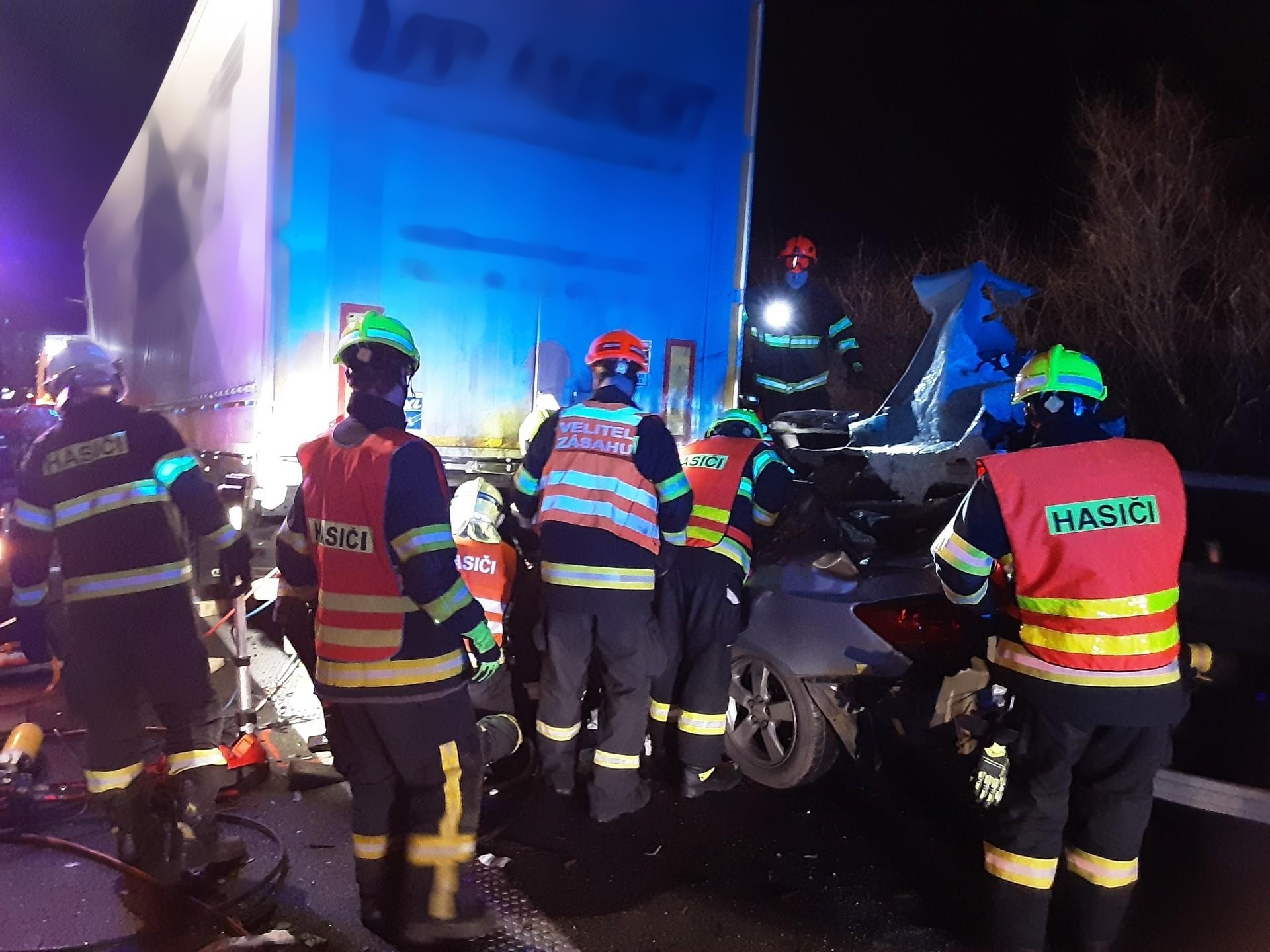 Dnes krátce po půl třetí ráno jsme vyrazili k vážné dopravní nehodě osobního auta a kamionu na dálnici D2 poblíž hranic se Slovenskem. Na místě už zasahovali slovenští hasiči. Osobní vůz zůstal zaklíněný pod návěsem kamionu a uvnitř byli dva lidé, které bylo nutné vyprostit. Náročná záchranná akce trvala asi hodinu, než se oba podařilo dostat z vraku a předat do péče záchranářů. Dálnice směrem na Brno byla během zásahu několik hodin uzavřená.