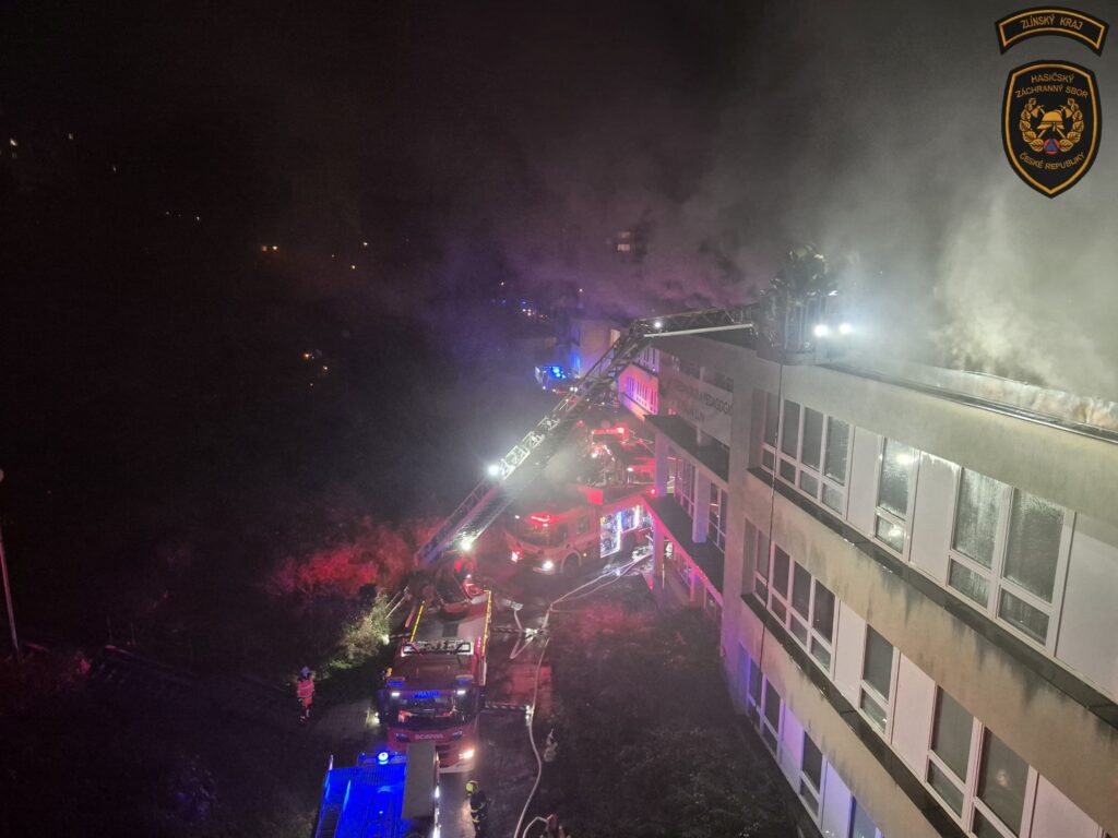 Krátce po páté hodině odpolední byl na krajské operační středisko hasičů oznámen požár střechy střední školy v ulici Česká ve Zlíně. Na místo postupně bylo vysláno 13jednotek profesionálních a dobrovolných hasičů. Byl tak vyhlášen třetí stupeň požárního poplachu. Taktéž byl na místo povolán dron, který snímá požářiště z výšky. Živý přenos je tak důležitou podporou pro velitele zásahu, kterým je krajský řídící důstojník. Aktuálně na místě požáru probíhají hasební práce. Událost se zatím obešla bez zranění. Lokalizace stále po několika hodinách neproběhla.