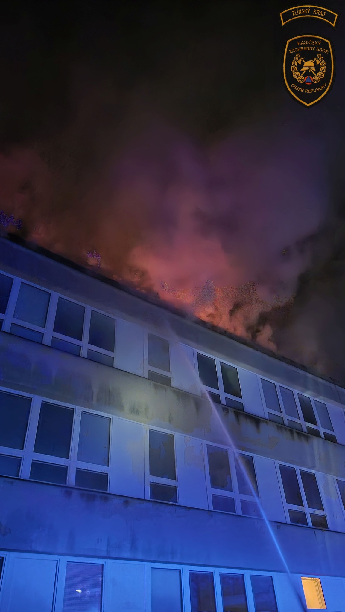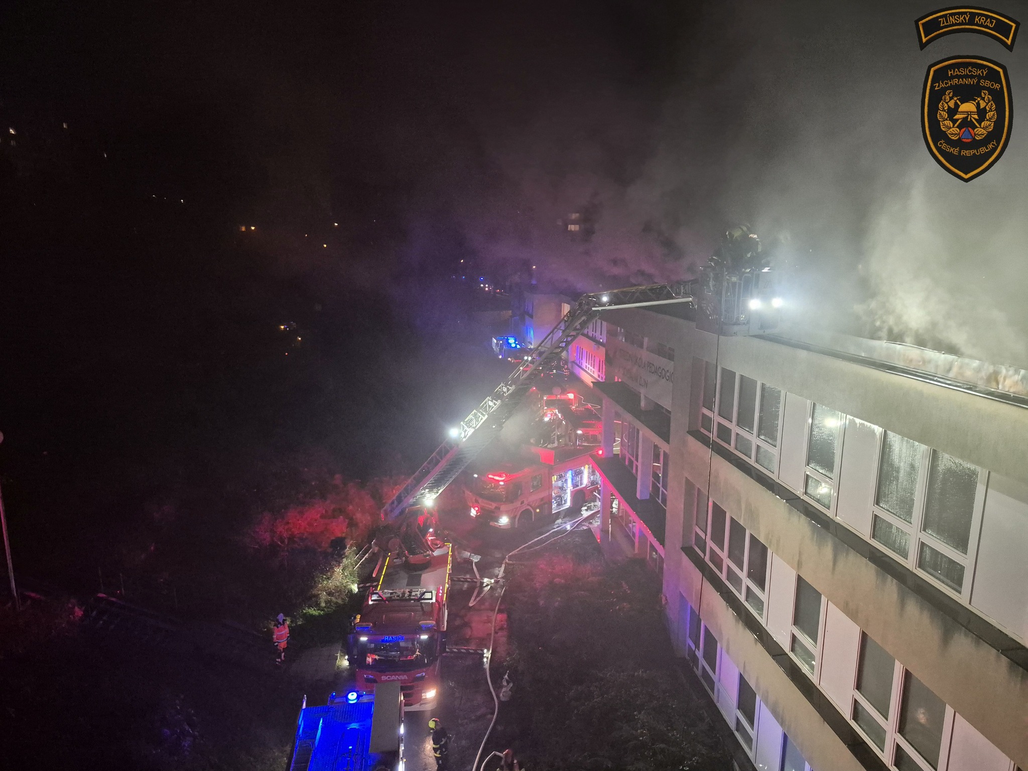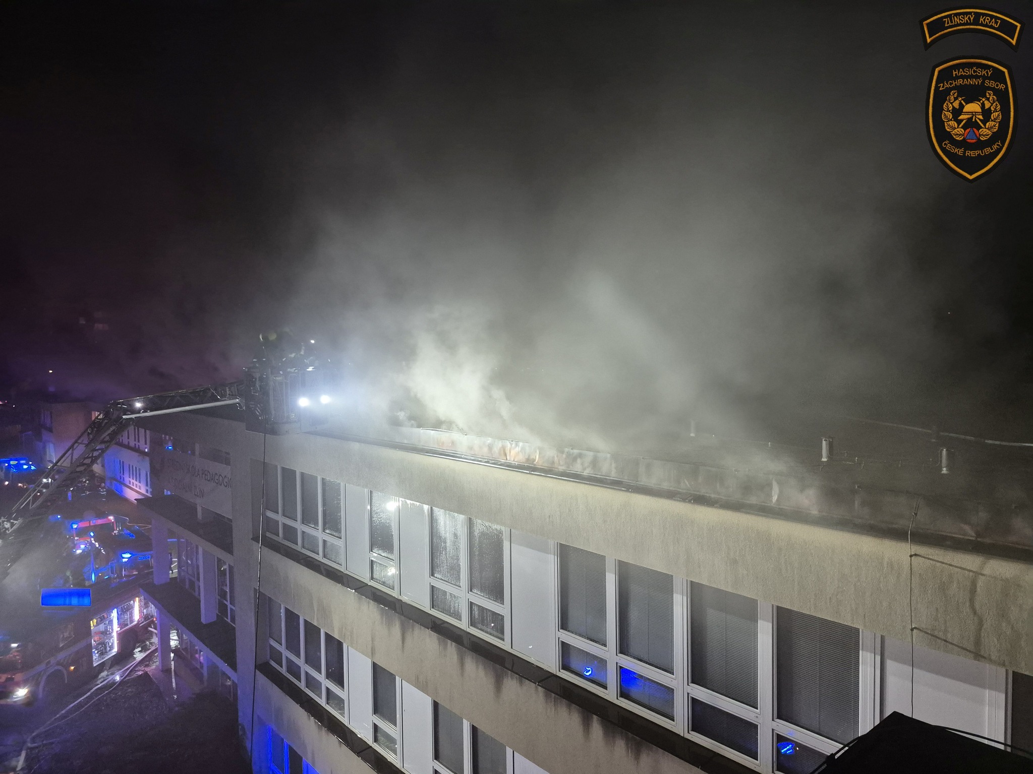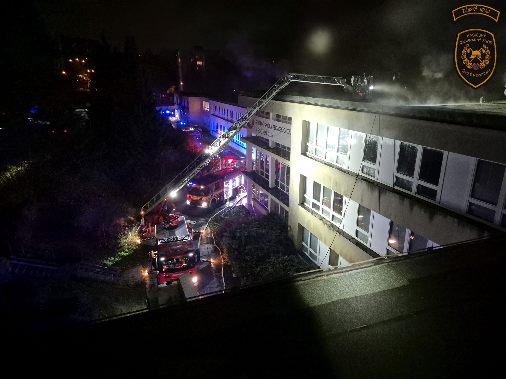 Krátce po páté hodině odpolední byl na krajské operační středisko hasičů oznámen požár střechy střední školy v ulici Česká ve Zlíně. Na místo postupně bylo vysláno 13jednotek profesionálních a dobrovolných hasičů. Byl tak vyhlášen třetí stupeň požárního poplachu. Taktéž byl na místo povolán dron, který snímá požářiště z výšky. Živý přenos je tak důležitou podporou pro velitele zásahu, kterým je krajský řídící důstojník. Aktuálně na místě požáru probíhají hasební práce. Událost se zatím obešla bez zranění. Lokalizace stále po několika hodinách neproběhla.