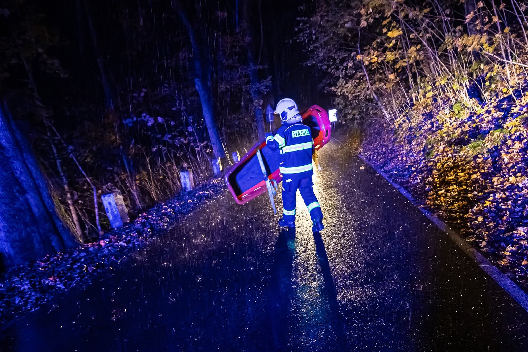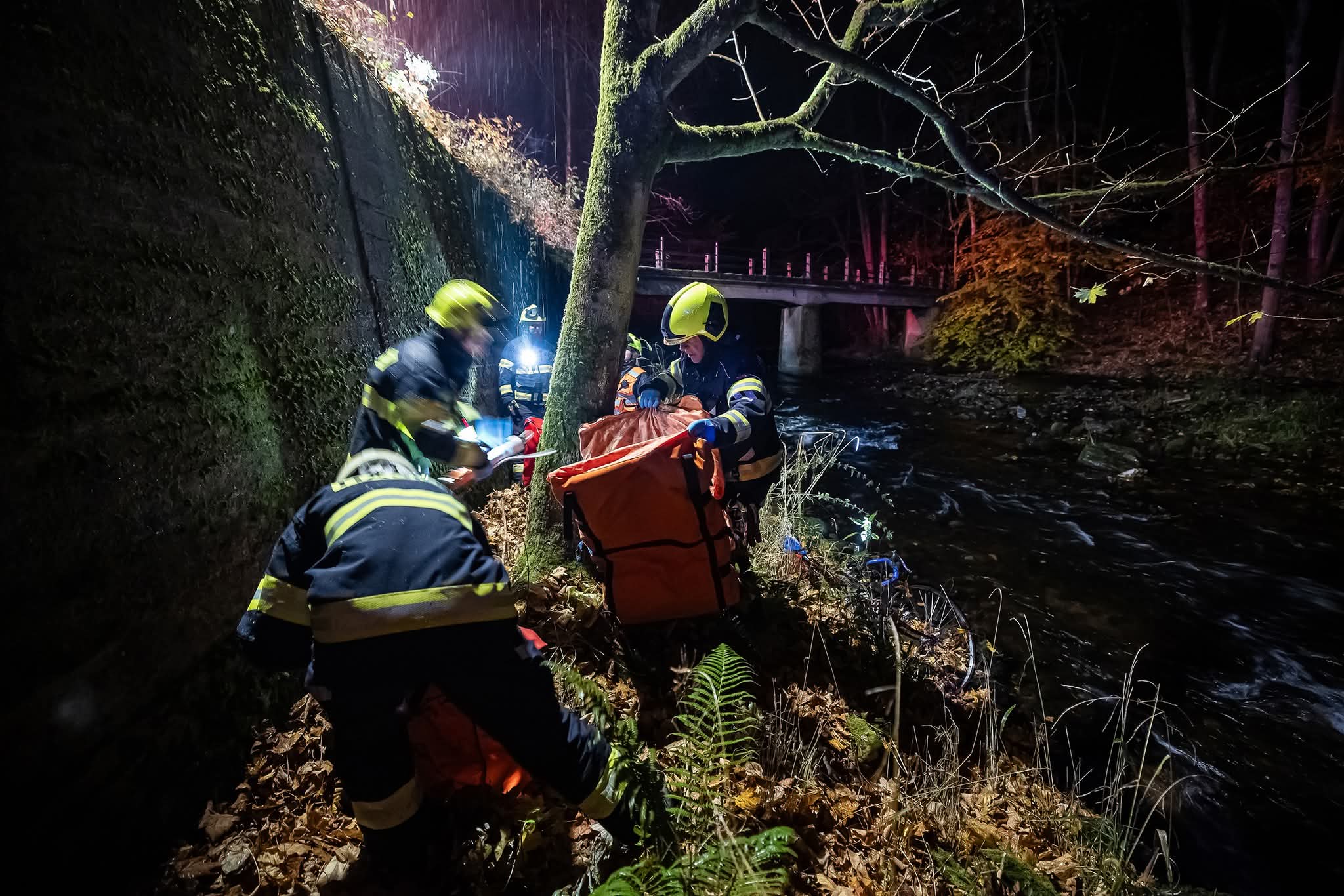 Na místo vyslalo krajské operační a informační středisko s dvěma jednotkami hasičů. Ti poskytli zraněnému cyklistovi první pomoc, zajistili jej do vakuové matrace a transportovali k posádce ZZS KHK . Následně hasiči z řeky vytáhli také jeho kolo.