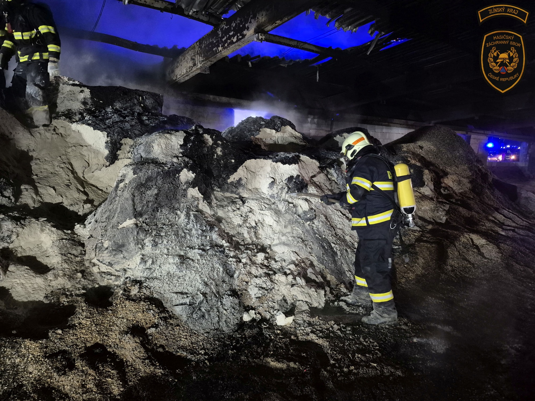 Už při příjezdu bylo zřejmé, že situace je vážná – hasiči viděli hořící objekt z dálky. Velitel zásahu si na místo povolal také územního řídícího důstojníka a vyšetřovatele hasičů. Po rychlém průzkumu zahájily jednotky hasební práce a nasadily několik proudů vody k zamezení dalšího šíření požáru.
