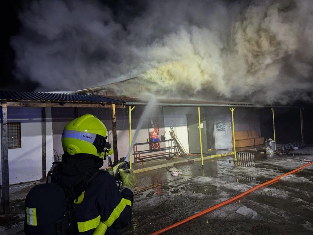 V sobotu 24. ledna 2026 večer zasahovali hasiči u požáru střechy bývalé tržnice v Petrovicích u Karviné.