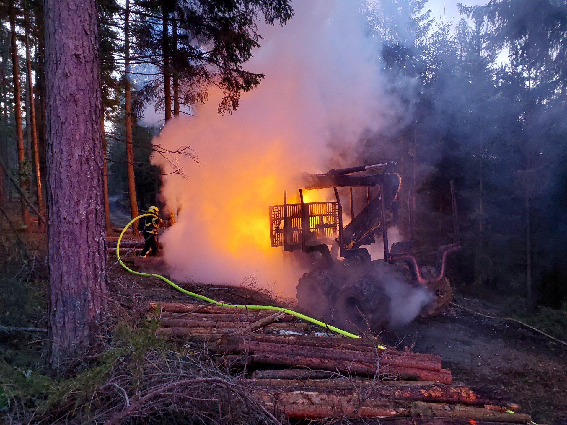 IZS, Krimi, Policie ČR, Sbor dobrovolných hasičů, SDH, Zásahy HZSPožár vyvážecího stroje v lese 02 Říj Dnes ráno před 7. hodinou zasahovaly jednotky u obce Dolní Paseky na Ašsku. Hořel vyvážecí stroj, škoda byla vyčíslena na více než 2 miliony korun. Příčinou byla technická závada byla elektroinstalaci. Zdroj: HZS Karlovarského kraje