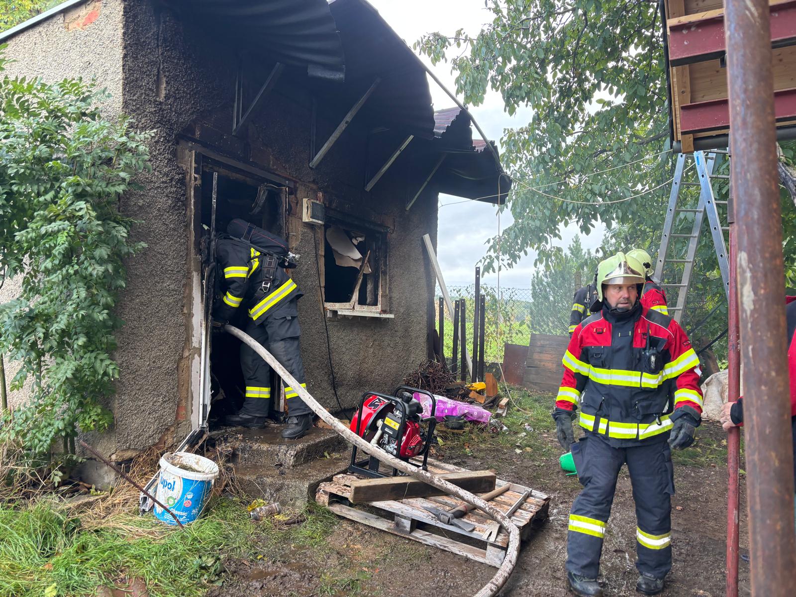 Při požáru kůlny se popálila jedna osoba