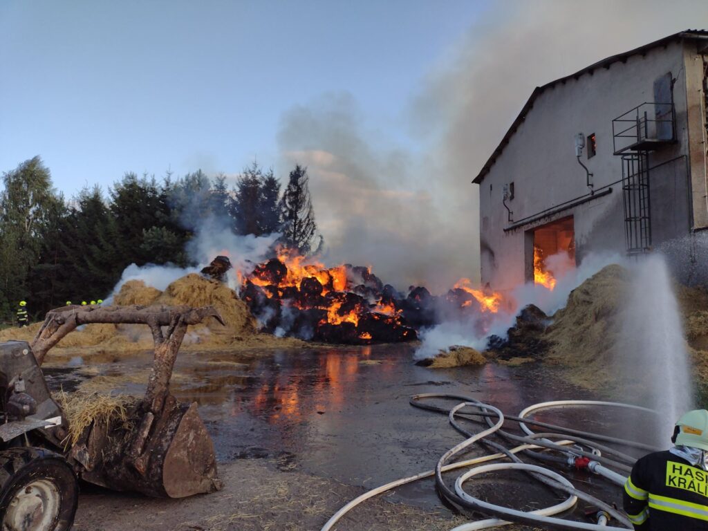 Při požáru skladu sena a slámy zasahovalo čtrnáct jednotek hasičů