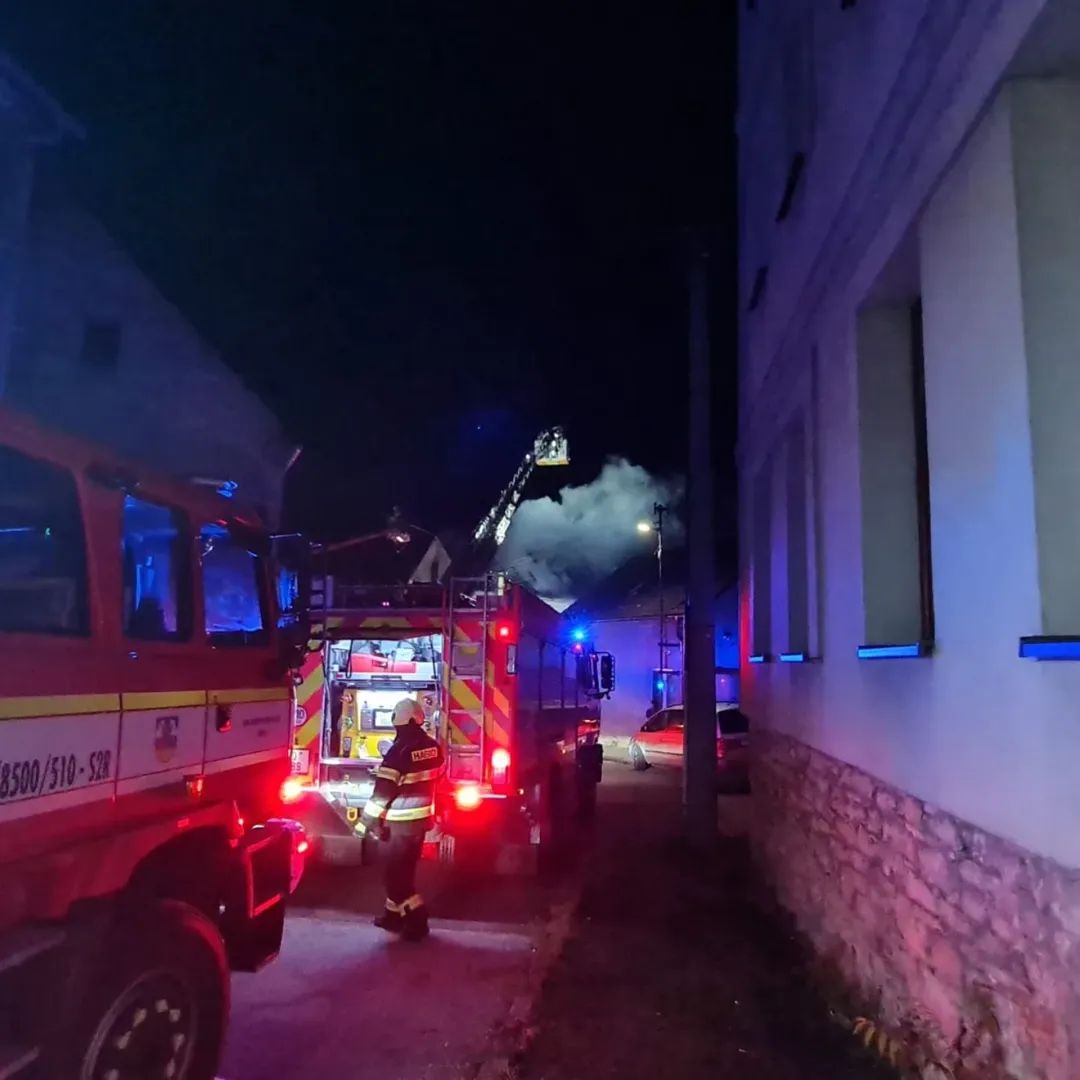 K požáru tří patrového domu o půdorysných rozměrech 10 x 6 m vyjely jednotky požární ochrany z II. poplachového stupně. První jednotka na místě hlásila požár střešní konstrukce v plném rozsahu. Pomocí 4 vodních C proudů a 1 D proudu jsme dostali požár pod kontrolu. Automobilový žebřík a plošina nám pomáhaly s hasebním zásahem a ochranou přilehlých objektů.