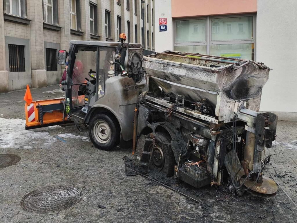 Požár zametacího vozu likvidovali hasiči na Mírovém náměstí v Ústí nad Labem. K uhašení vozidla použili dva vodní proudy, jeden vysokotlaký a jeden „C“. Vlivem vysoké teploty praskla skleněná výplň v přilehlé budově. Požár byl lokalizován v 8:54 hodin a zcela zlikvidován v 9:26 hodin. Při zásahu nedošlo ke zranění. Škoda přesáhne 500 tis. Kč, uchráněné hodnoty pak 200 tis. Kč. Příčinou vzniku požáru byla technická závada na autobaterii.