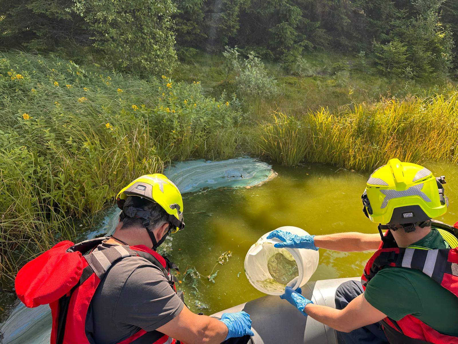 Hasiči u výpusti rybníka instalovali nornou stěnu a odebrali vzorky vody. Zástupce Povodí Ohře na místě události vyhodnotil odebraný vzorek jako sinice. Úhyn vodních živočichů včetně ryb nebyl pozorován. O výsledku – výskytu sinic hasiči informovali starosty okolních obcí.