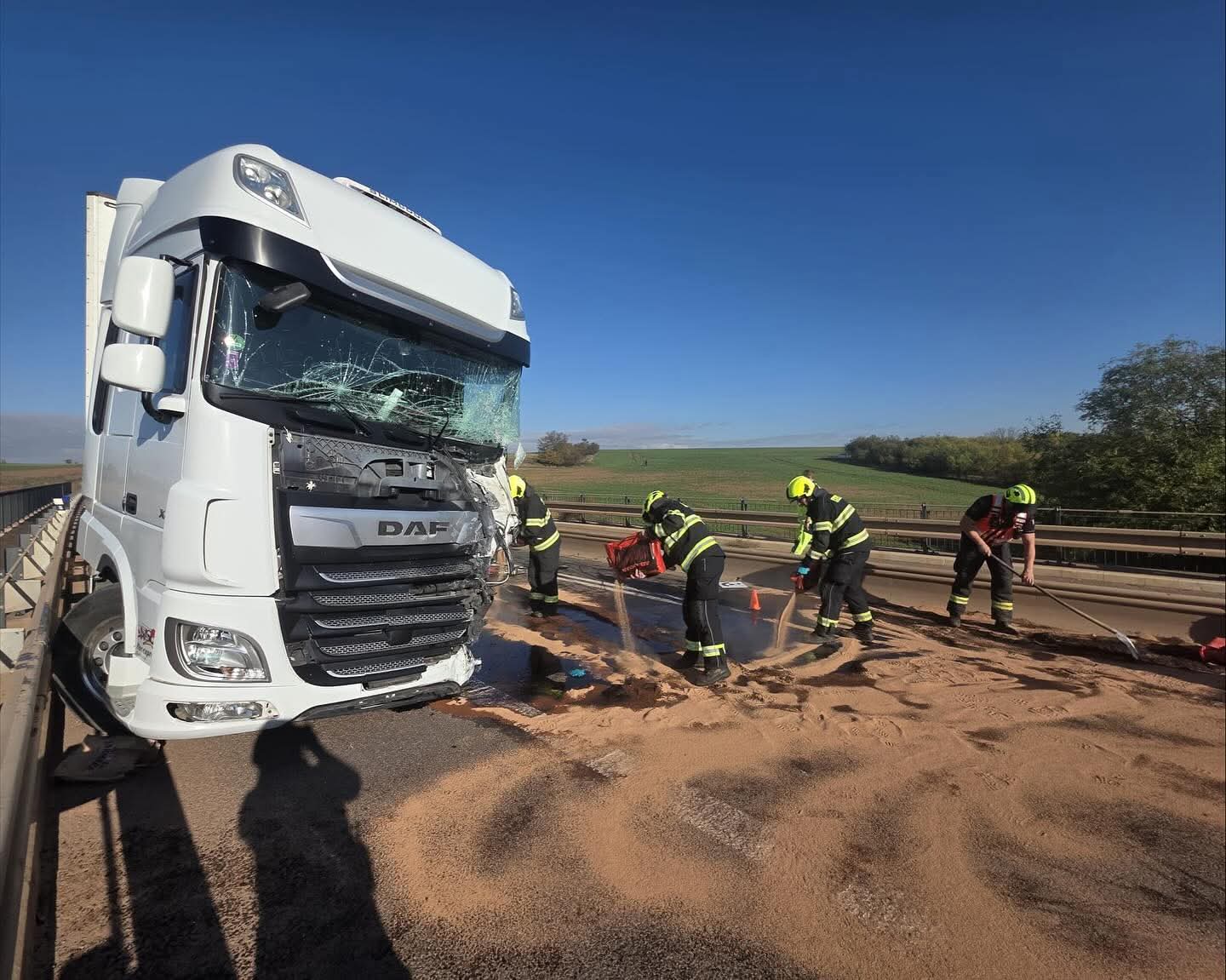U tragické dopravní nehody dnes dopoledne zasahovali profesionální hasiči z Kladna a Slaného, řídící důstojník a dobrovolní hasiči ze Zlonic. Na silnici I/7 došlo ke střetu nákladního a dodávkového automobilu. Jedna osoba střet nepřežila, další museli z vozu vyprostit hasiči. Následně musely jednotky řešit masivní únik provozních kapalin z nákladního automobilu. Uniklé látky zasypaly sorbentem ve spolupráci se Správou a údržbou silnic, ty z poničených nádrží musely přečerpat. Silnice byla zavřena několik hodin pro veškerou dopravu.