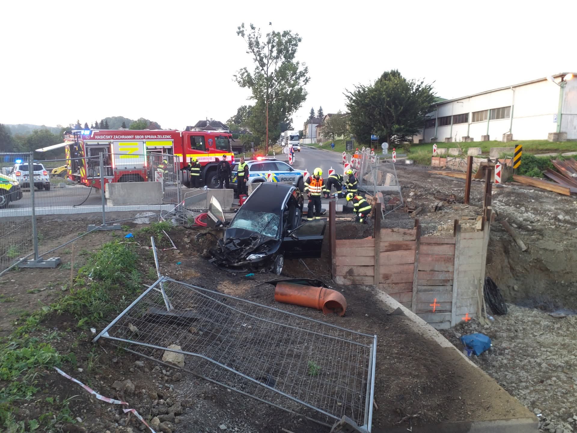Tragická nehoda v České Třebové, osobní auto bouralo na rozestavěném kruhovém objezdu