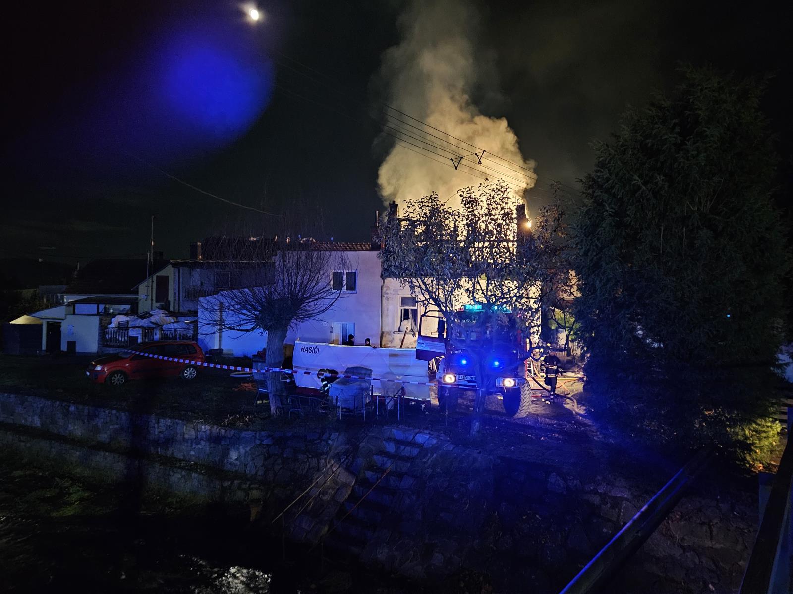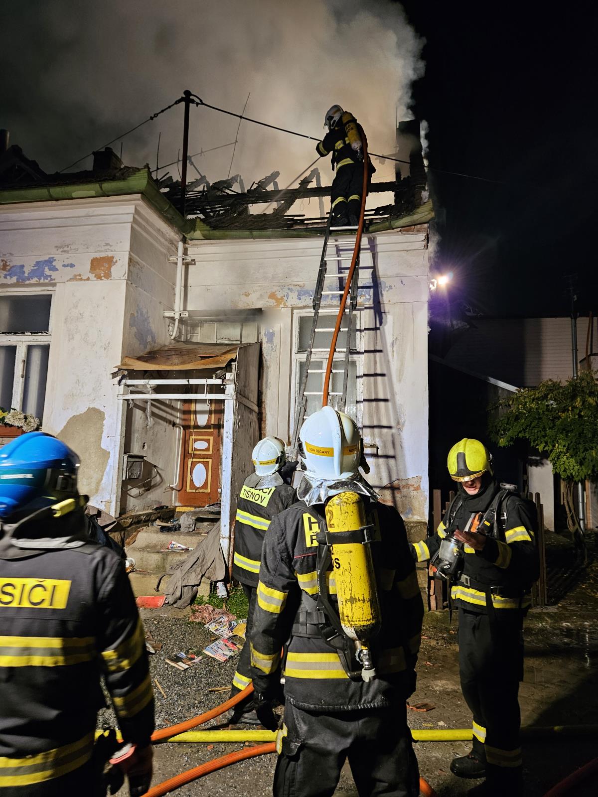 Ve čtvrtek ráno si velitel zásahu vyžádal posilovou jednotku. Ve sklepě se rozhořelo ohnisko a hasiči museli nasadit tímto směrem další vodní proud.
