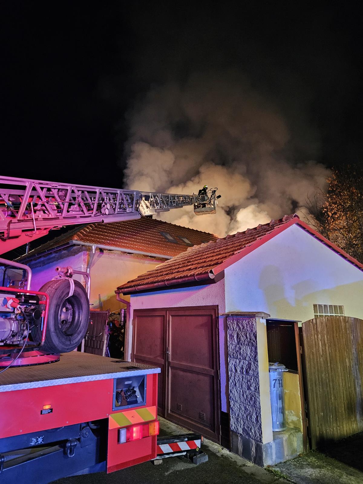 Na místě zasahovalo celkem 13 profesionálních i dobrovolných jednotek a přibližně 80 hasičů. Místo zásahu bylo rozděleno na dva úseky. Plameny zasáhly dům a jeho střechu, oheň se rozšířil i na vedlejší objekt.
