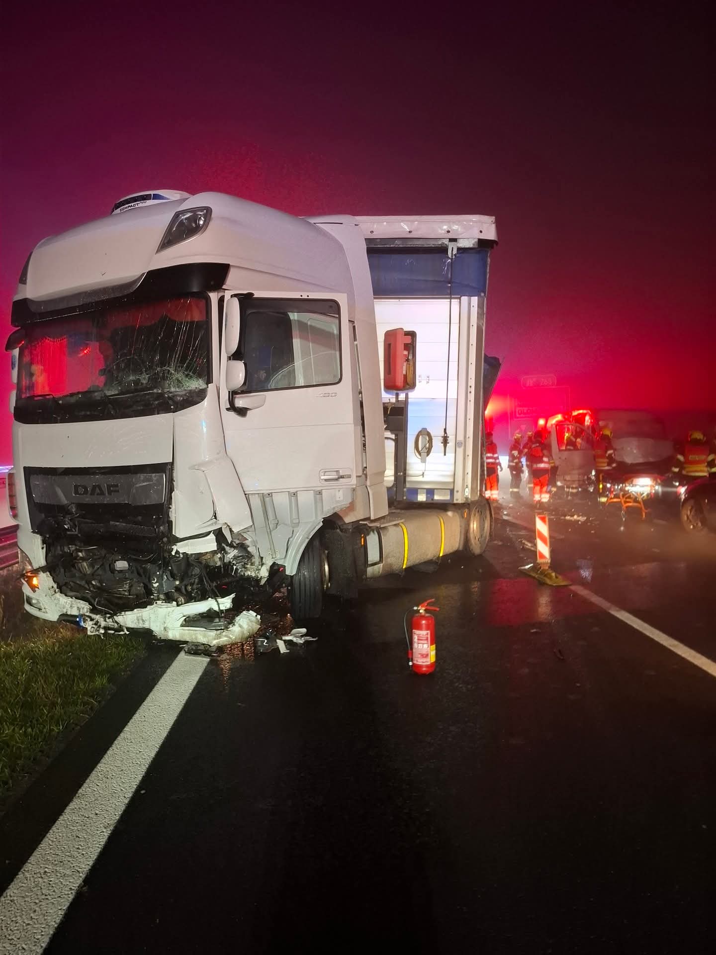 Dálnice je nadále uzavřena v obou směrech. Nehoda si vyžádala jeden lidský život. Z důvodu snížené viditelnosti apelujeme na řidiče, aby dbali zvýšené opatrnosti, uvedla policie Olomouckého kraje na síti X.