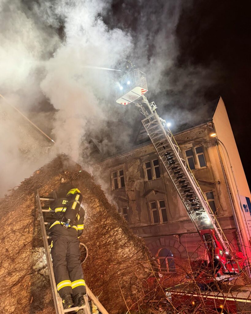 Informaci o požáru střechy rodinného domu jsme obdrželi krátce před půl devátou večer. K požáru okamžitě vyrazily jak profesionální, tak dobrovolné jednotky z okolí.