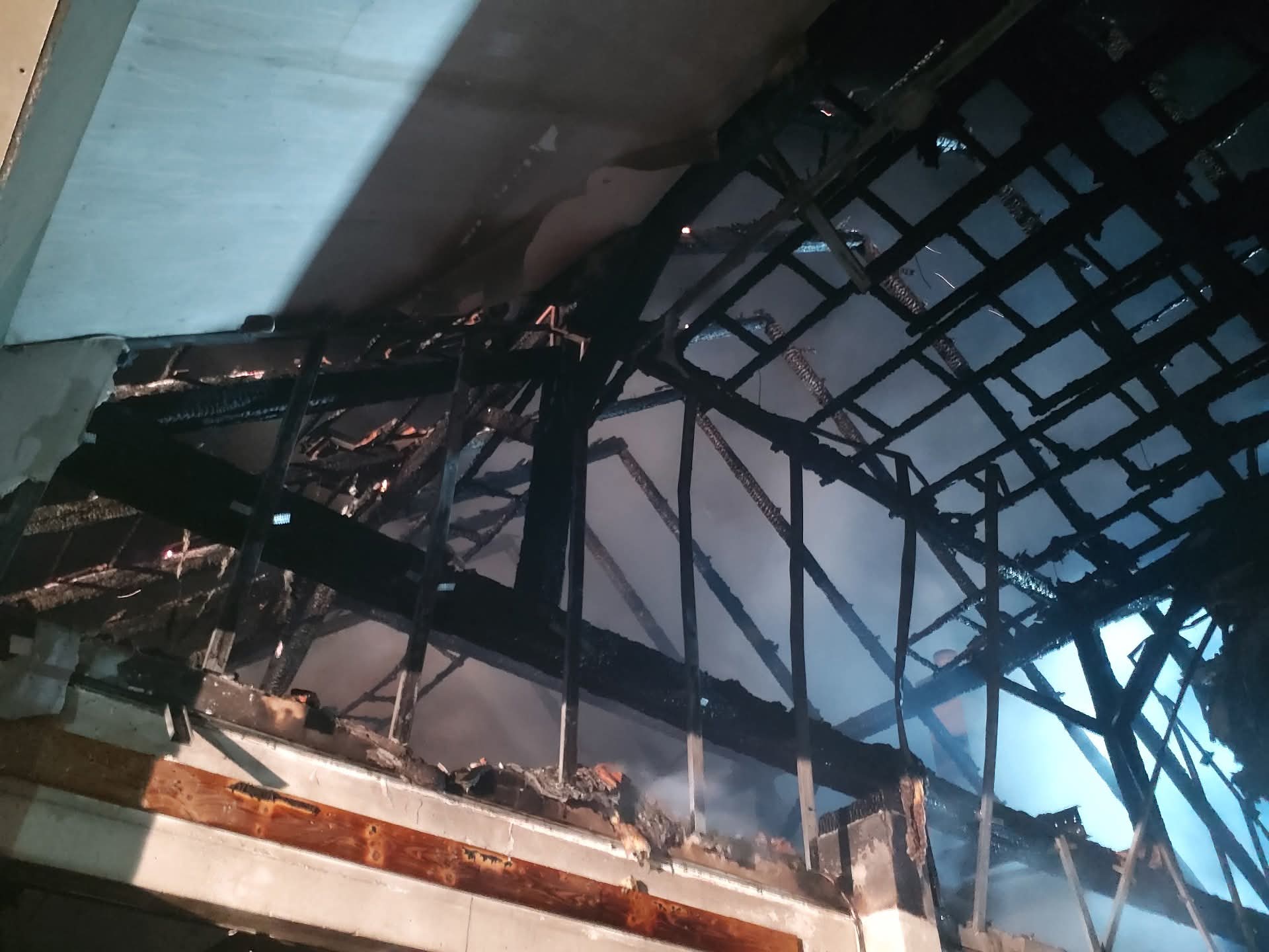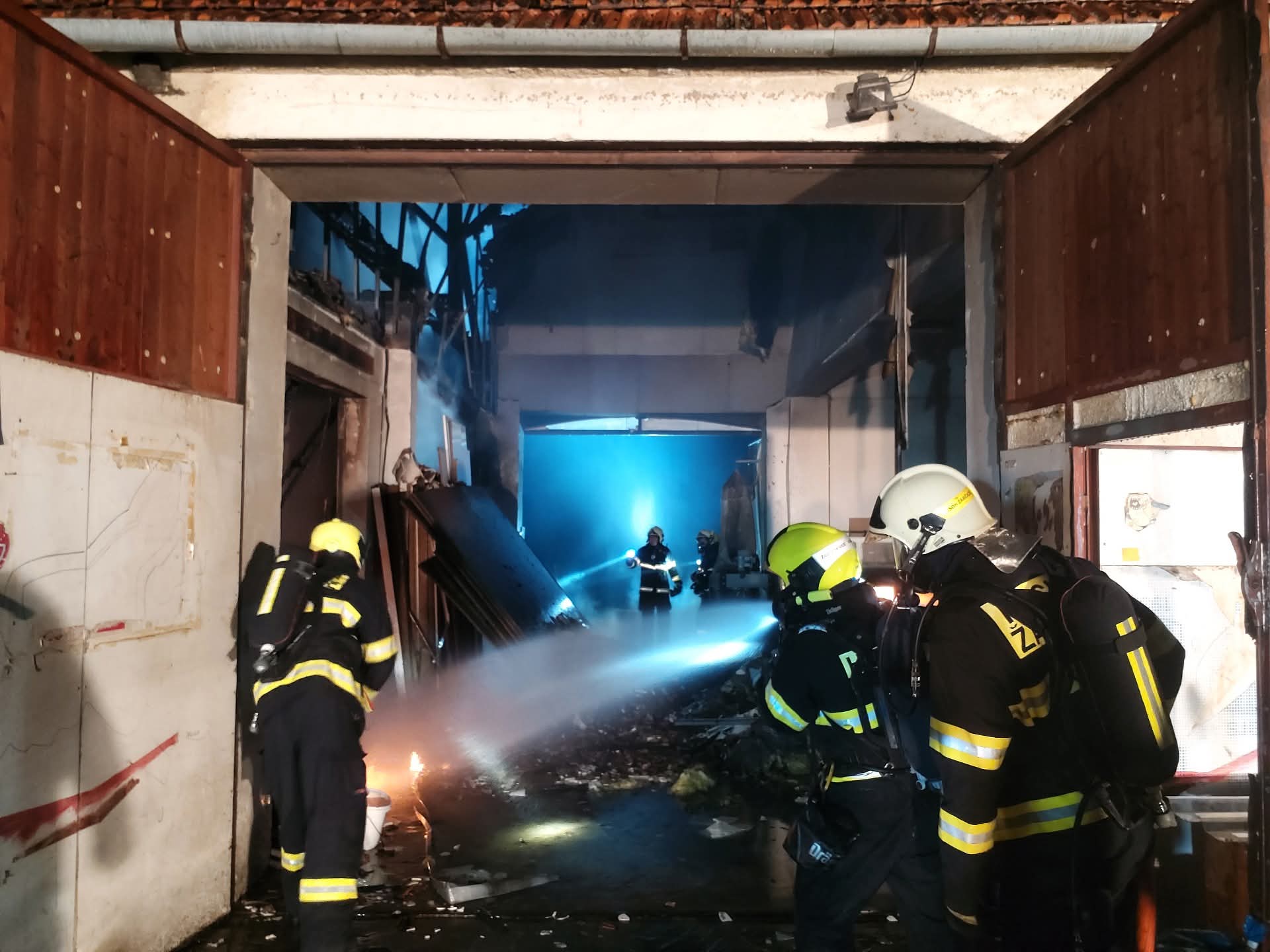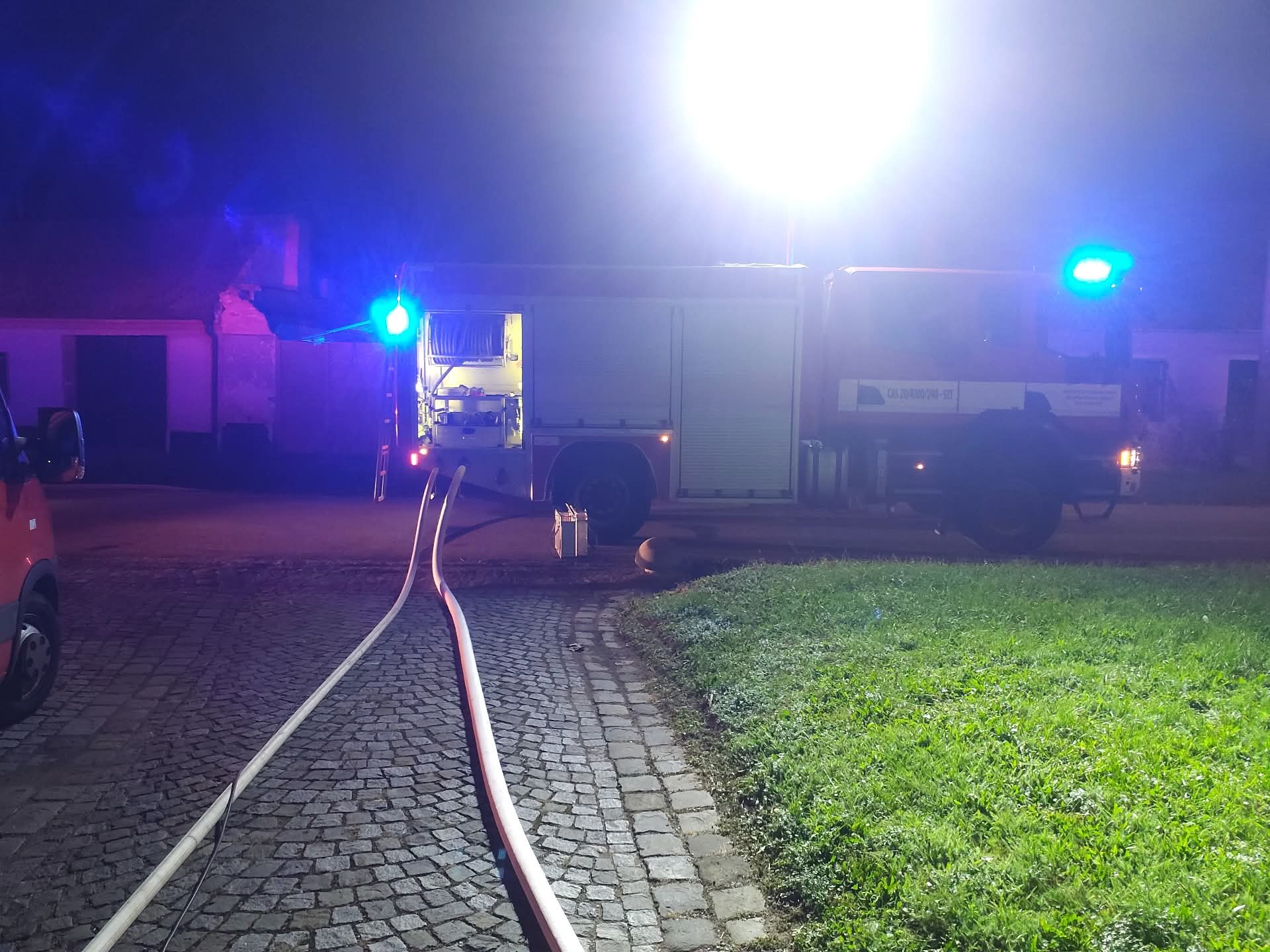 Na místě probíhalo nasvětlení a rozebírání konstrukcí kvůli dohašování skrytých ohnisek.