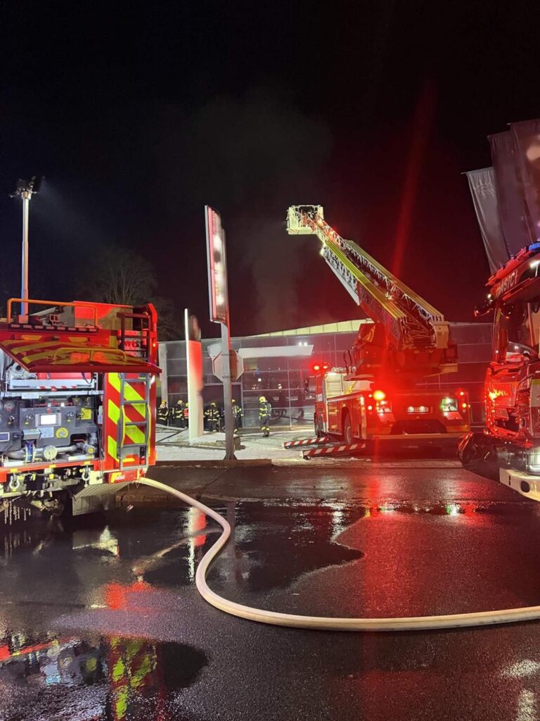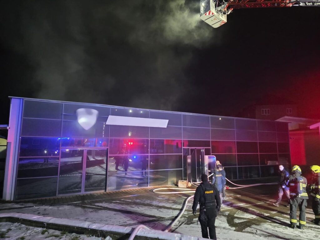 V České Lípě v nočních hodinách hořel autosalon, zasahovalo pět jednotek hasičů.