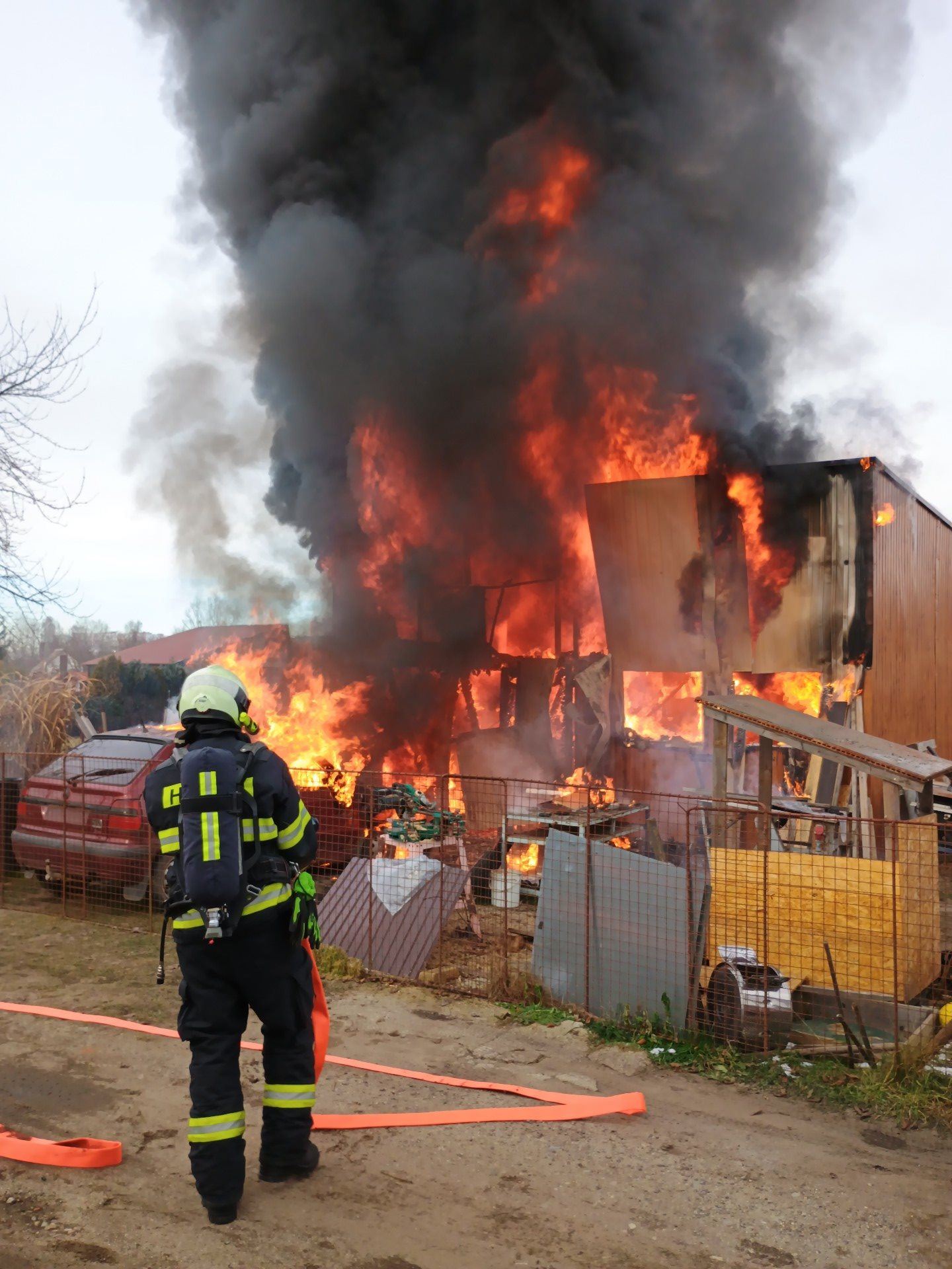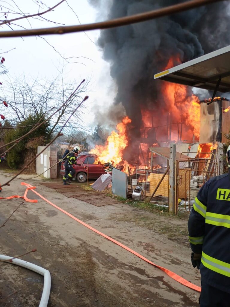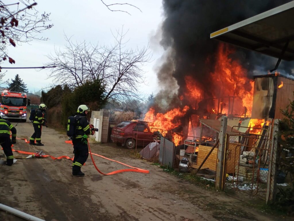 V Českých Budějovicích zasahují hasiči u požáru chaty v plném rozsahu