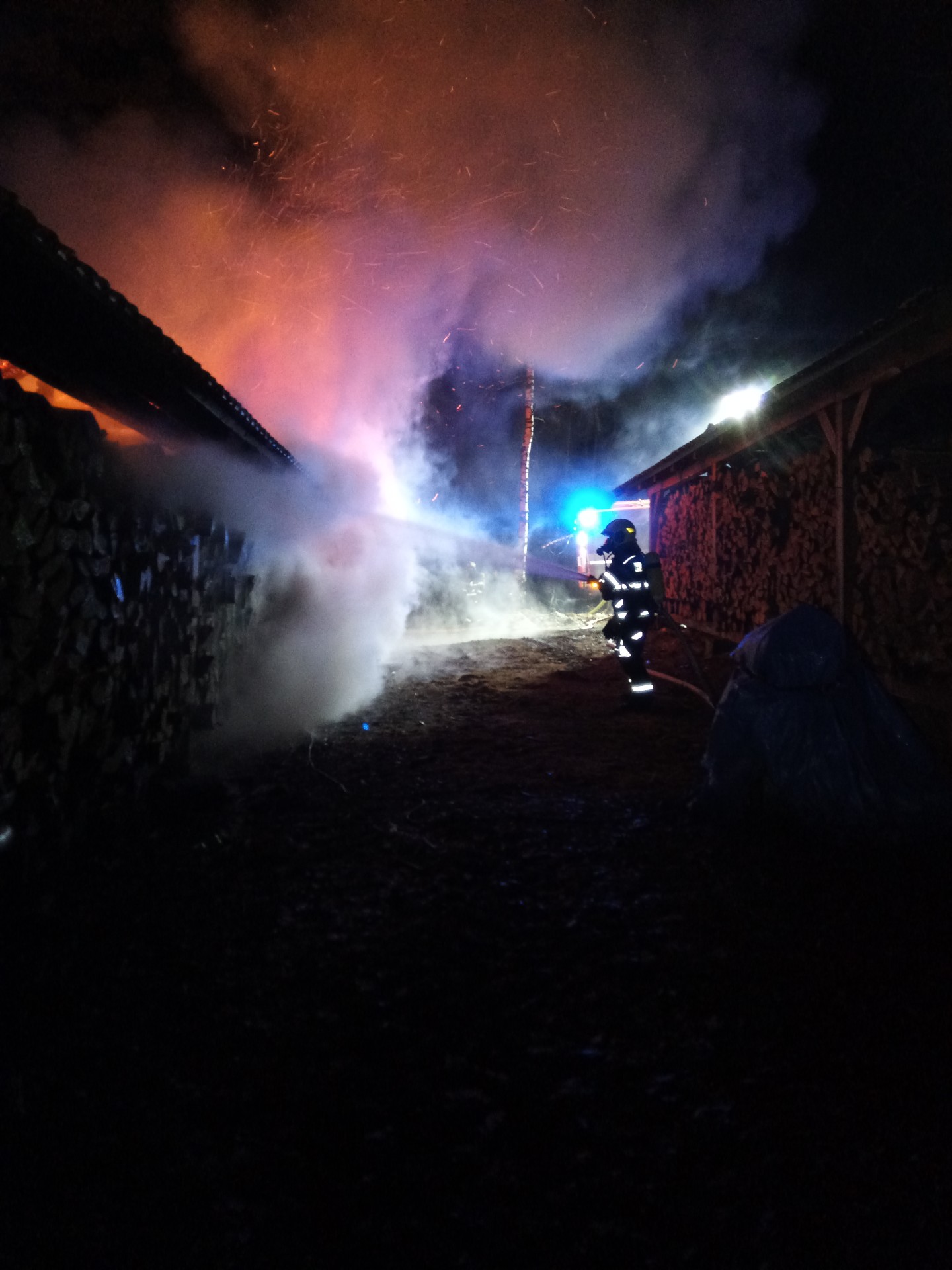Velká zář a kouř na obzoru,s těmito slovy byl ve tři hodiny ráno nahlášen na KOPIS HZS JHC požár dřevěného přístřešku a dřevníku na N.Hradech.V době našeho příjezdu na místo události byly přístřešky plně zasaženy požárem.