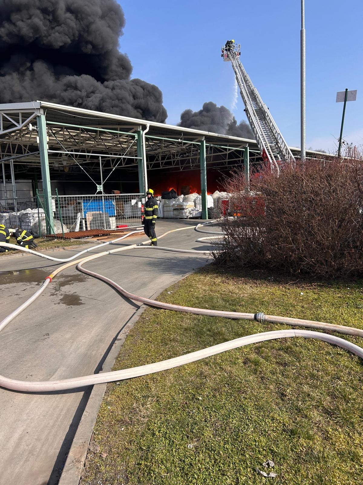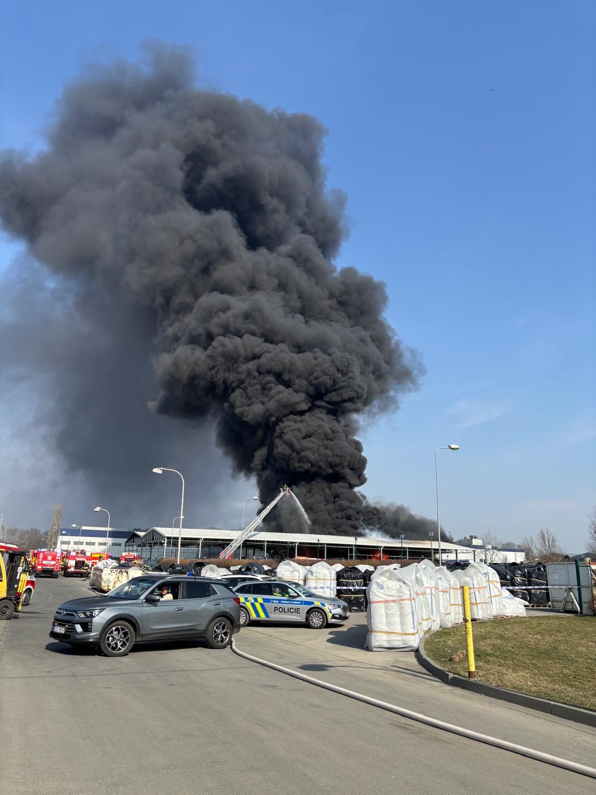 Vyhlášen byl již 3. stupeň požárního poplachu a velitel zásahu si na místo povolává další jednotky s cisternami. Vítr aktuálně fouká směrem na Tlumačov. Proto doporučení k omezení větrání platí pro obyvatele i této oblasti.