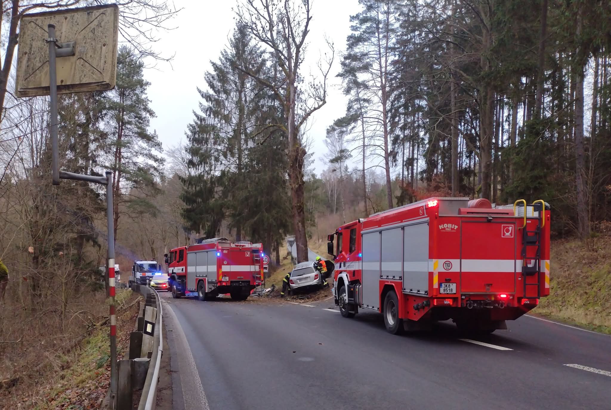 Z havarovaného a těžce poškozeného auta museli hasiči vyprostit zaklíněného mladíka. „Utrpěl zranění neslučitelná se životem,“ uvedl policejní mluvčí Jakub Kopřiva. Na místě zasahovaly všechny složky integrovaného záchranného systému, silnice je v úseku nehody úplně uzavřená a policisté odklánějí dopravu na objízdné trasy.